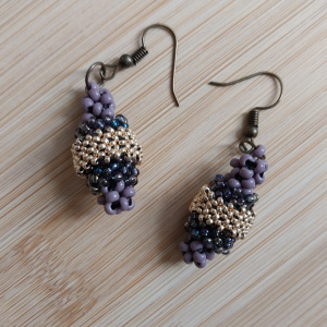 У этих сережек долгая история. Увидела я их как бы ни у кого из вас, еще на БИ. И загорелась. Это сочетание гладких бусин, бисера, цветовое совпадение и простота (кажущаяся, как выяснилось) заворожило. И я принялась запасать материалы....