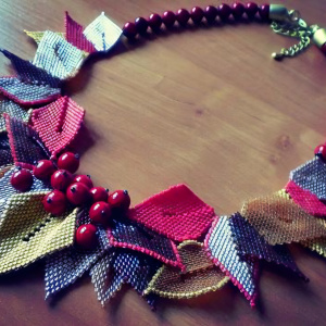 Сходила в архив БИ и вытащила старую свою работу колье Осенний глянец — аж 01.12.2014 года выложила, участвовала с ним в конкурсе. Конечно никакое место не получила — там мастерицы-участницы высшего уровня были. По книги иностранной...