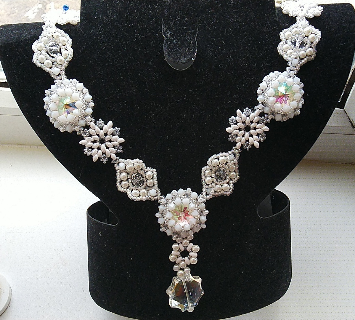 Ирина, так я и живу на севере в Архангельской области, потому и тянет на зимнюю тематику, но это колье делала летом, а летом у нас белые ночи. Благодарю за интересный комментарий.