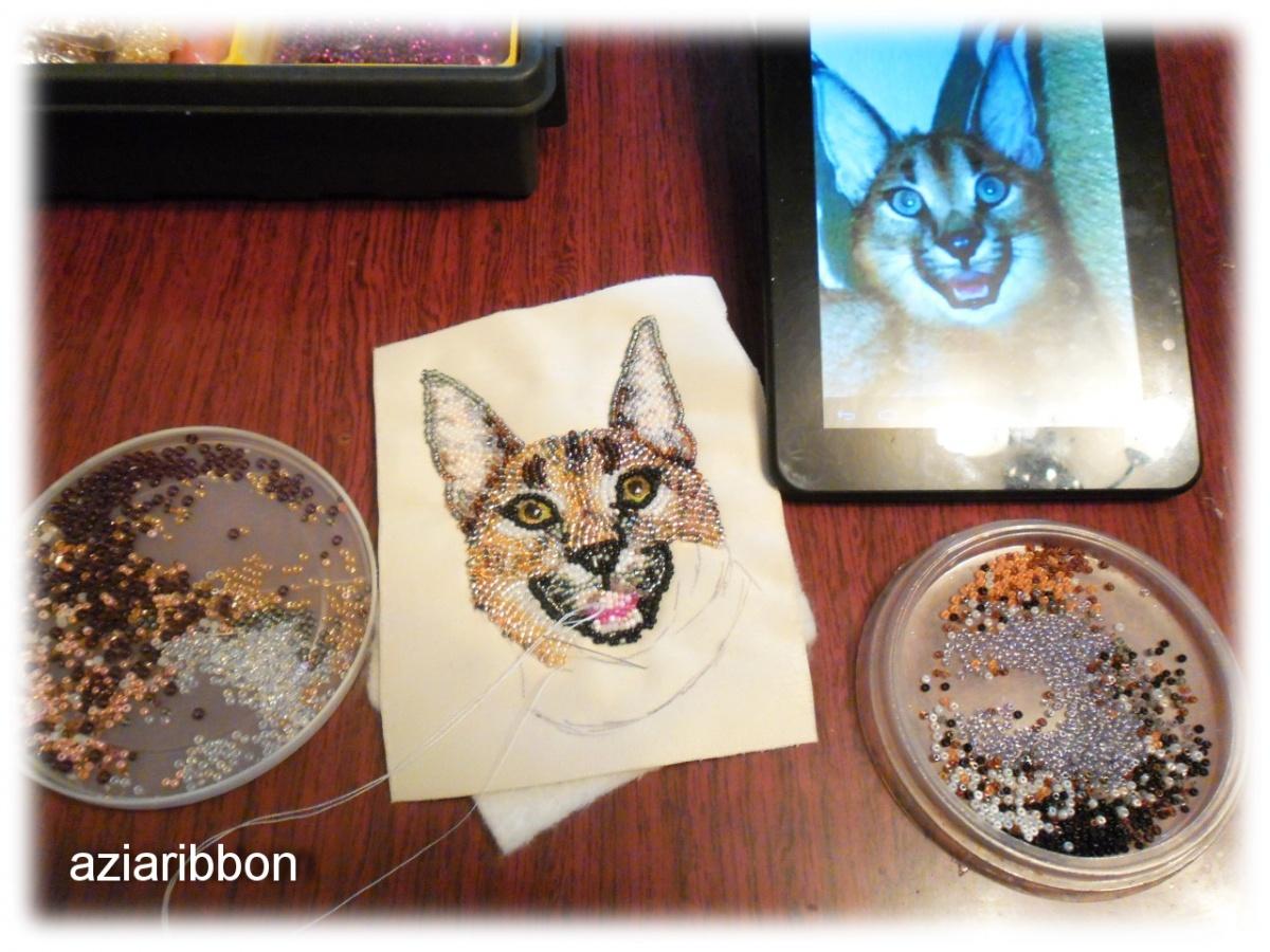 Последний — это кот породы хайлендер. У нас их нет. Я вышивала орден с бисерной планкой в виде этого кота по заказу питомника этой породы из Канады. Потому и орден в виде кленового листика