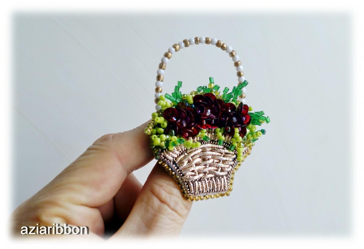 А корзинка из канители — заслуга автора брошки, я только повторила ее технологию.