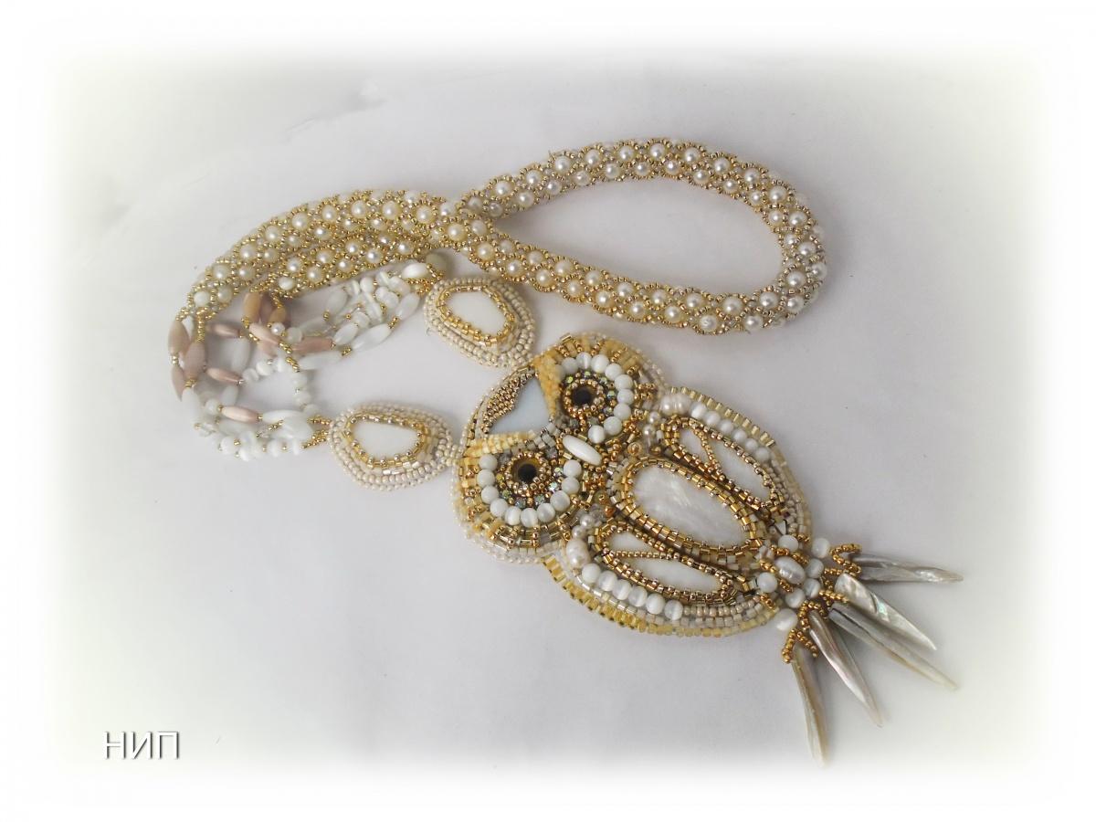 Сумочку, к которой и был сделан кулон, я в «голодный год» продала за три копейки  Осиротевший кулон почти год лежал без дела, пока я не сваяла себе новую белую сову.