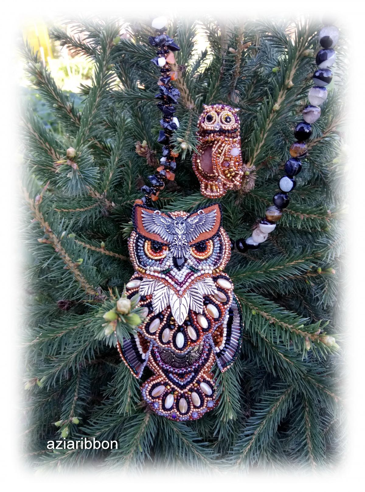 Показывала я уже кулон «Белая сова», сделанный в комплект к соответствующей сумочке. И надумала я сделать сову стандартного окраса. А тут еще, понимаешь ли, конкурс… Две работы я уже предоставила, можно бы и остановиться. Но вошла во вкус!