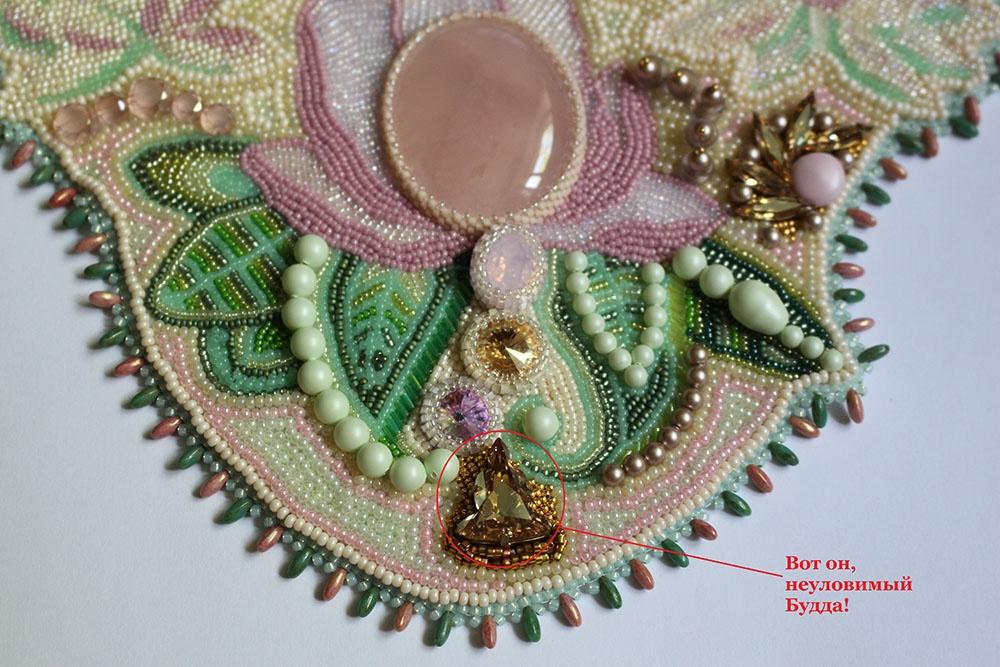 Колье участник МиЦ 2015, решила пусть тоже будет здесь в альбоме. В финал работа не попала, в этом году в МиЦ не принимала участия, надеюсь в следующем получится. Маленький золотой будда медитирующий у пруда с лотосами. Будду (маленький элемент Сваровски внизу) на моих фотографиях откровенно не видно, больше всего он смахивает на ёлку.