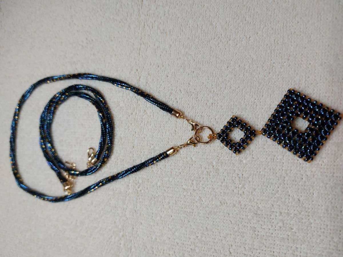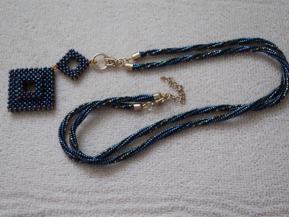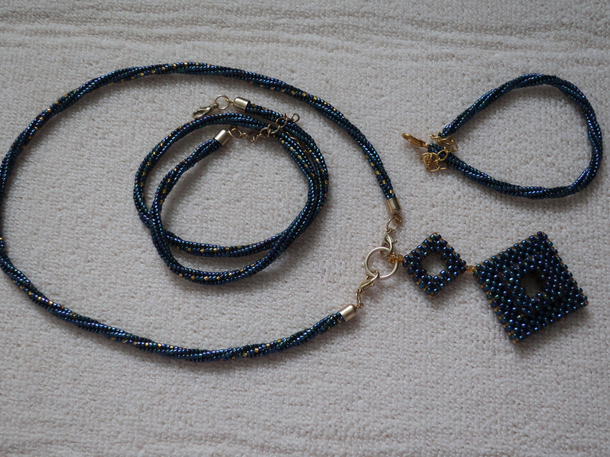 А началось все с того, что после плетения браслета Синяя полночь — показывала его раньше — остался бисер. Решила сделать в комплект цепочку. А там Остапа понесло.