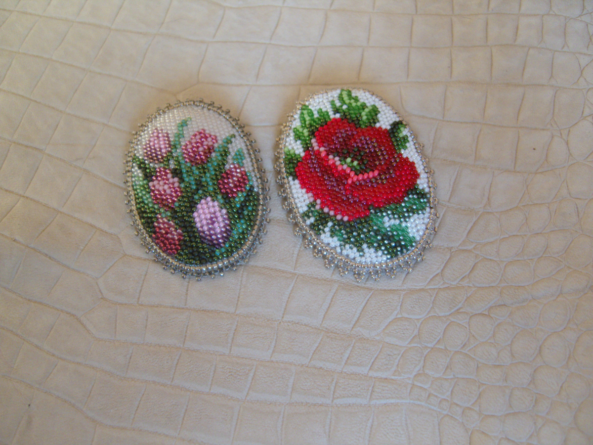 Доброго всем дня! Нашлись и у меня броши вышитые для флешмоба, бисер 15-ка на канве 18.