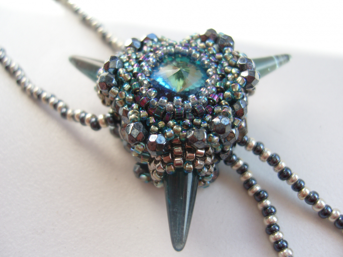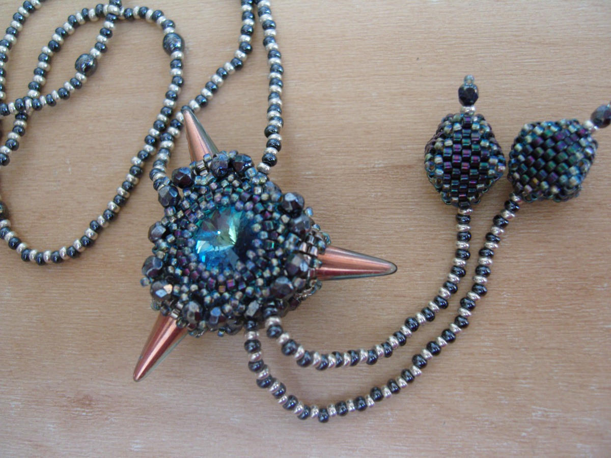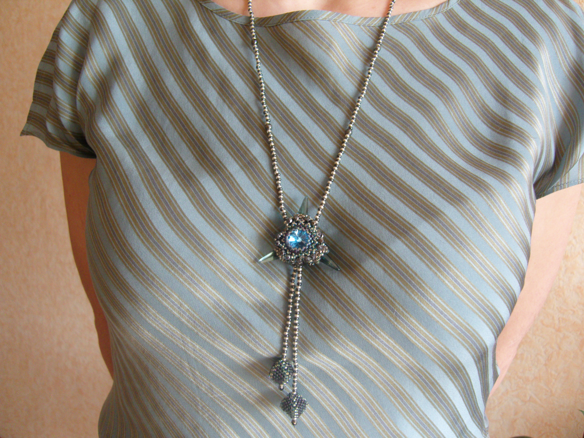 Ещё один кулончик-любимчик, чешская риволька 12мм, кто-то мне сказал, что похож на смотрящий пристально глаз. Кулончик двусторонний, бусинки 3мм, делика.