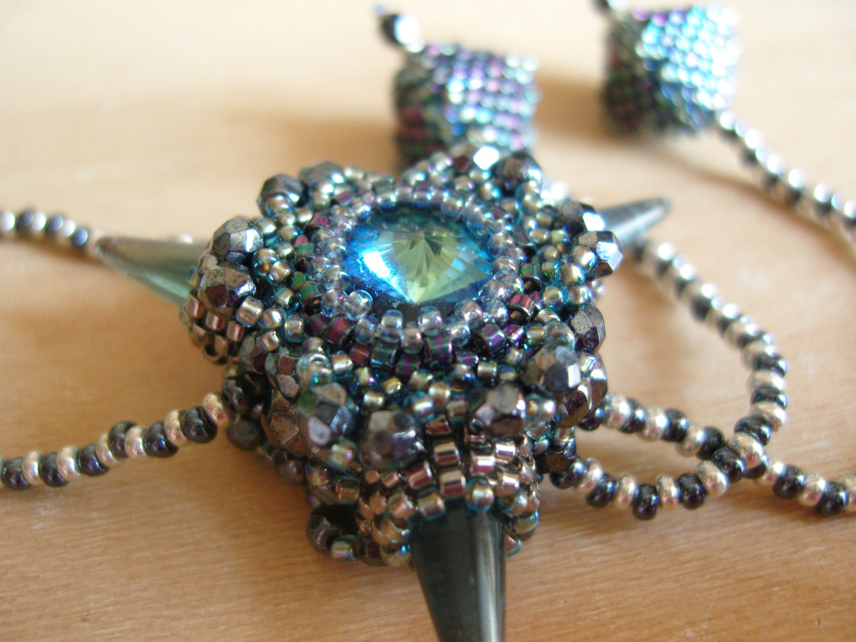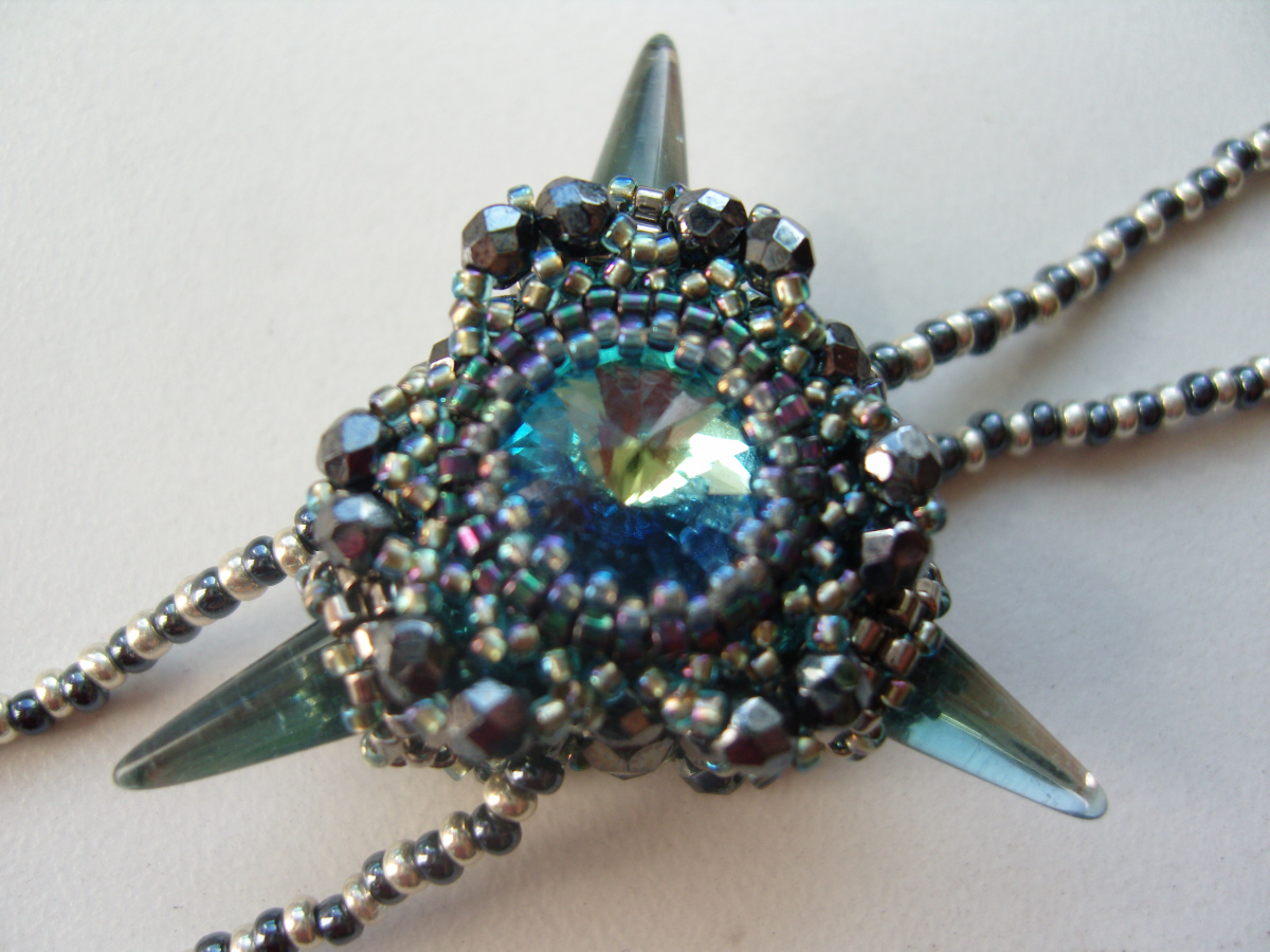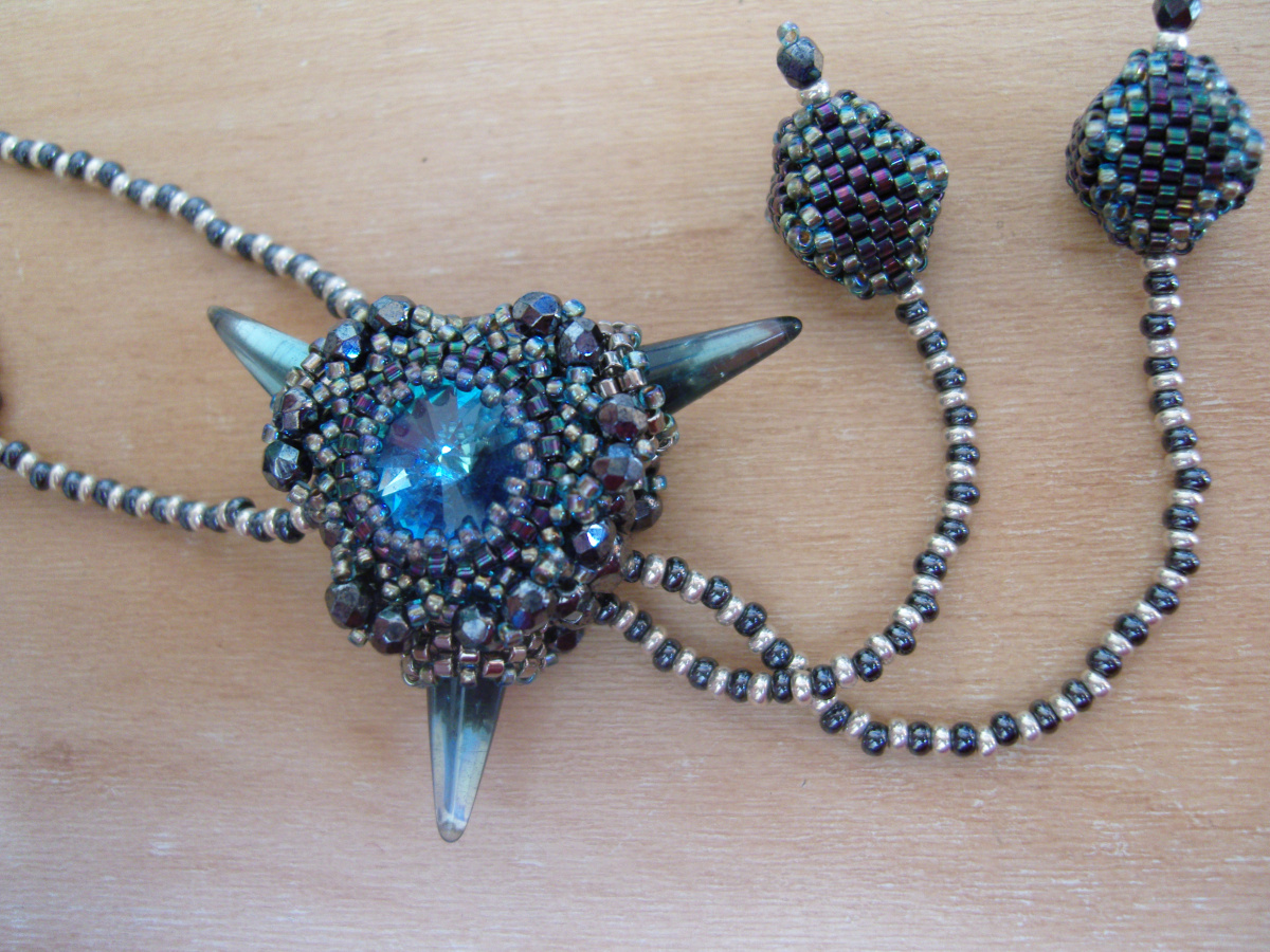 Ещё один кулончик-любимчик, чешская риволька 12мм, кто-то мне сказал, что похож на смотрящий пристально глаз. Кулончик двусторонний, бусинки 3мм, делика.