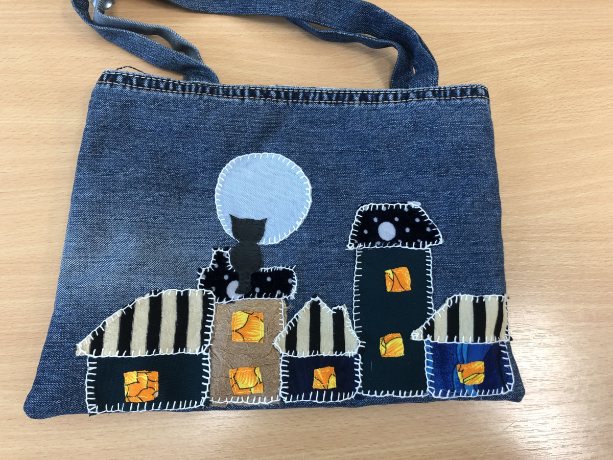 Из работ мне, конечно, больше всех сумка с котиками на крыше понравилась.