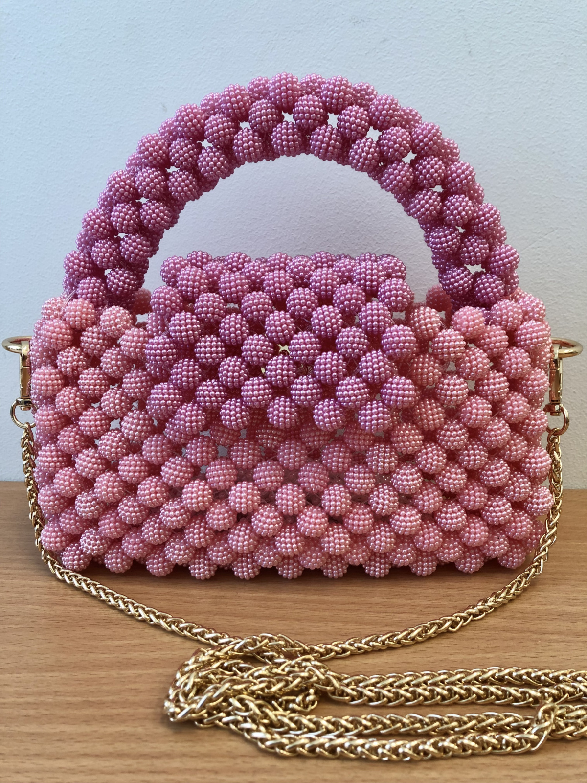 Доплетают мои девчонки сумочки, пока эта готова, из бусин 1,4мм, так уж захотелось ребенку. Но она не тяжелая, бусинки пластик очень легкие.