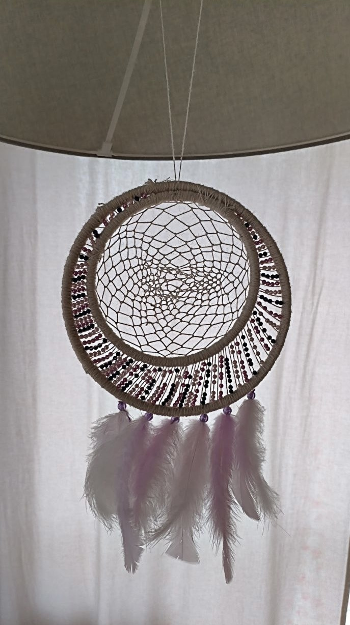 Там и бусины, и перья в одной гамме, на фото не очень видно.