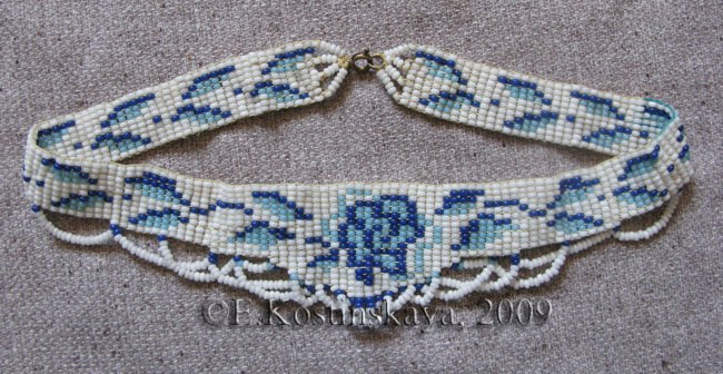 Очень трогательная для меня вещь, сделанная ещё в школе. Я тогда сама не решалась рисовать схемы, папу попросила, и цветов у меня было совсем мало, потому в воротничке только белый, синий и голубой.