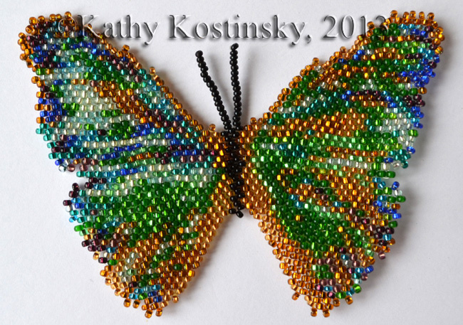 Сплетён мной для моей коллекции бисерных бабочек мира в 2009 году. Чех № 11, 17 цветов. Схема рисовалась с фотографии, сделанной на бабочковой выставке «Цветов летучих рой».