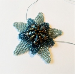 Ну Вы и скажете! У Вас прекрасные интерпретации, в которые Вы вносите много своего — стиль работы, который мне импонирует по многим причинам. Конкретно с этим звездами же вот что. В них есть цветок-звезда в центре, я фотографировала этапы плетения серединки. Лепестки — как в моих старых цветах, но есть нюансы, поэтому хочу над ними еще поработать, пока есть схема от руки, но качество меня саму не устраивает. И есть лучи,, с которыми я намудрила, потому что был бисер cubes нужного цвета, который хотелось приткнуть, а по уму надо делать по-другому. Есть конкретная не техника даже — прием, при помощи которого делали сначала шапочки для бусин (был МК), потом серьги-кисточки, а можно еще — бейлы для кулонов, «рамки» для оплетения кабошонов, и вот такие звезды-снежинки тоже можно. Надо опять же садиться и систематизировать это все в одной ветке, т.к. прием простейший, а возможности еще не все исчерпаны.