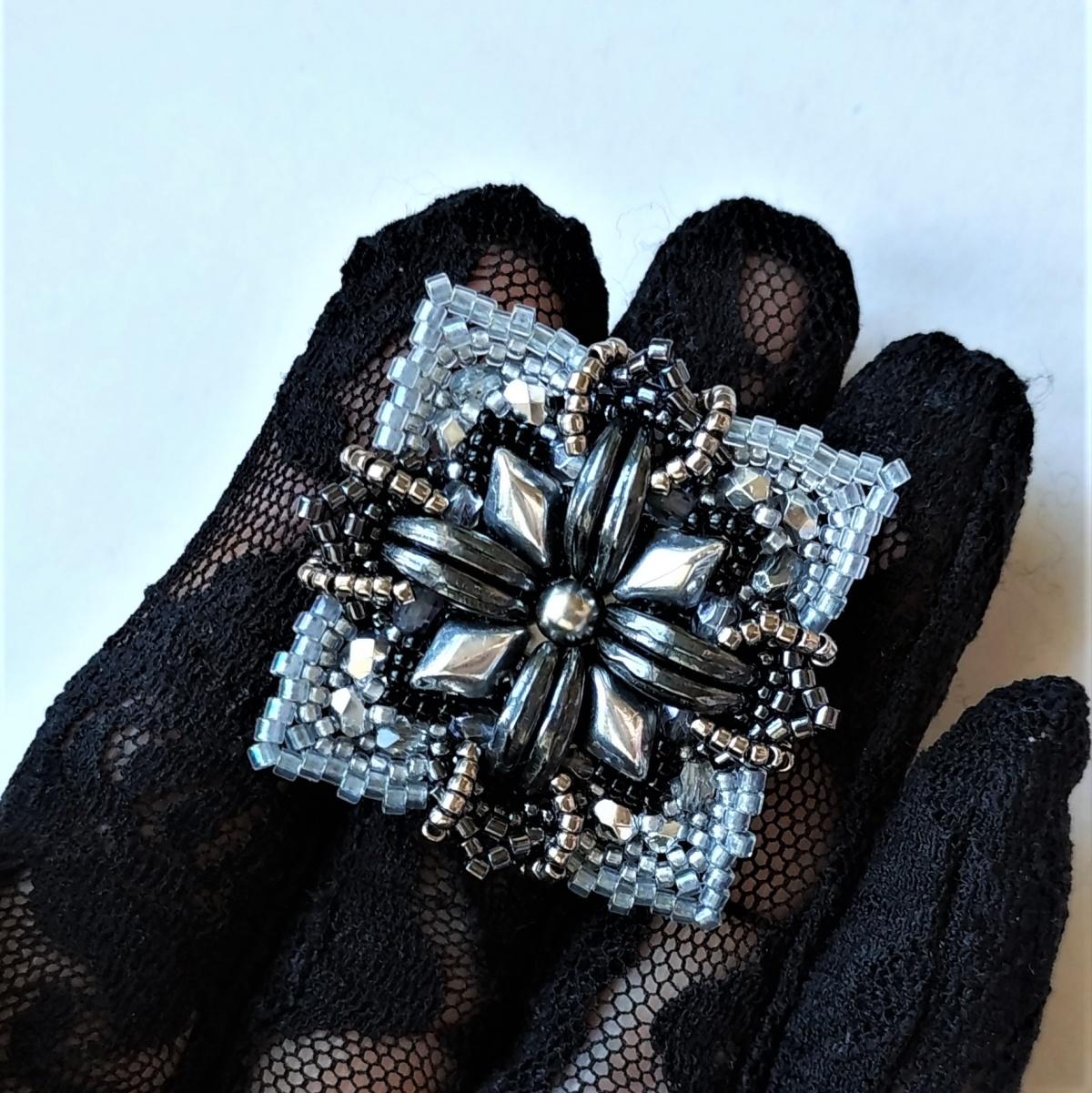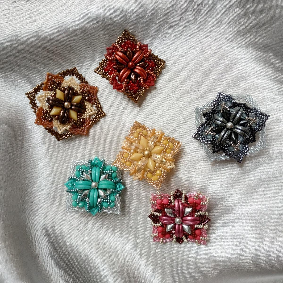 Патента на квадратные брошки получать не буду, и не уговаривайте! Но да, форма нежно любимая. Из квадратных элементов это у меня то ли четвертый, то ли пятый…