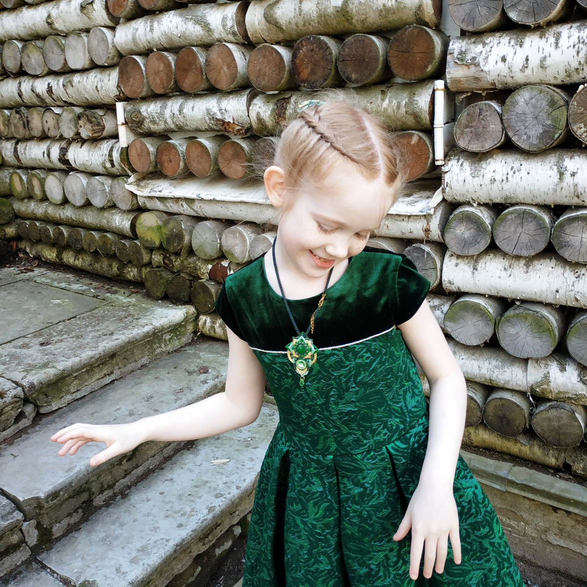 Очень красиво! Этот комплект с этим платьем мне нравится больше, мне кажется, что для того колье лучше декольте подойдет. Девочка чудо, такая артистичная!