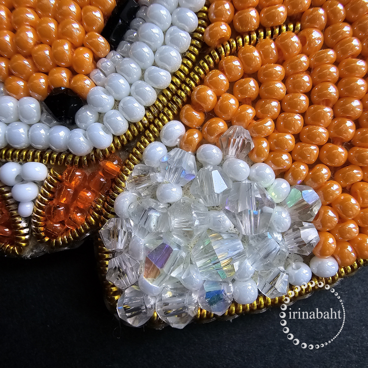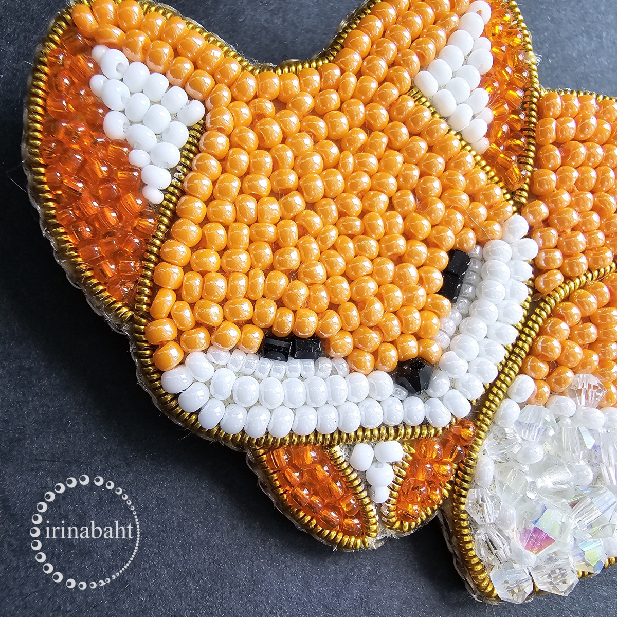 Какой сладкий! И хвостик очень удачно получился с бусинками, кажется, что он пушистый. Вот казалось бы, нонсенс — пушистость изображать гранеными льдистыми бусинками — а очень симпатично!