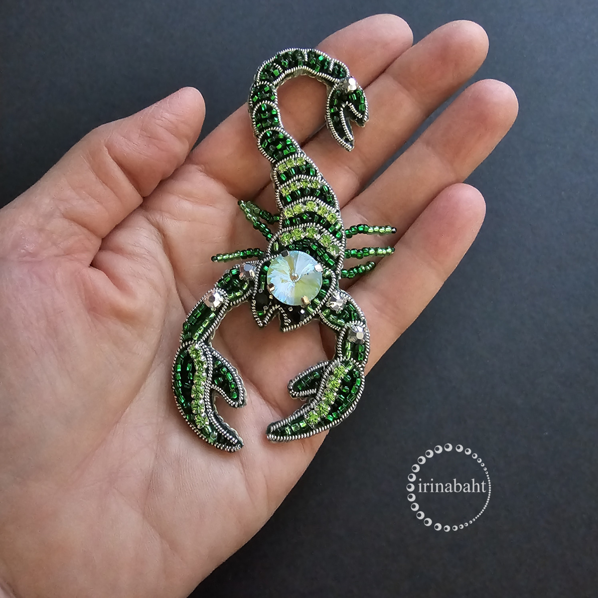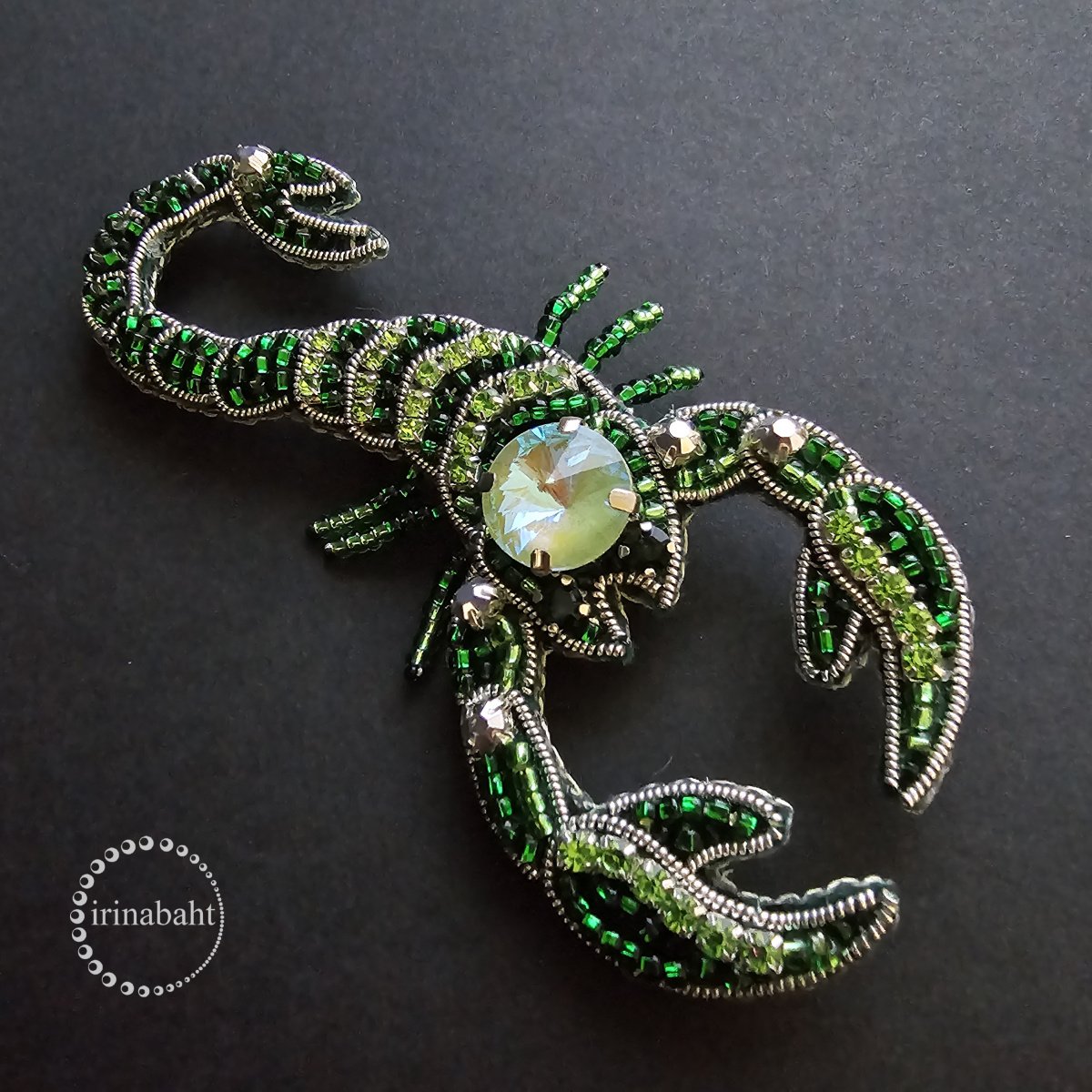 Я возвращаюсь к вышивке — и встречайте первая работа после паузы: брошь‑скорпион.