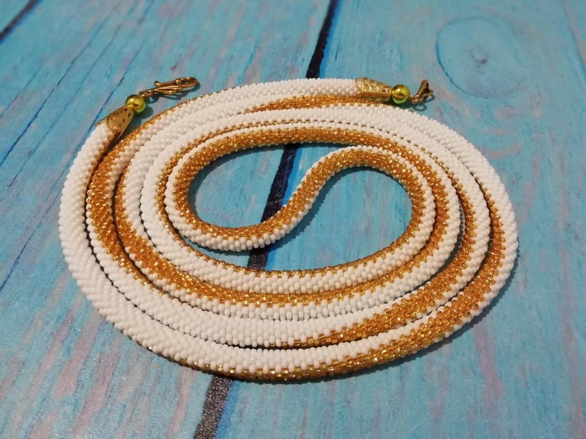 Вообще-то я в декабре планировала другую работу делать, но, увидев шнурик с головой-змейкой с разных сторон были заказаны ещё лариаты.