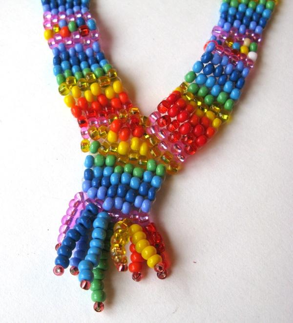 Я доплела бусики и стала просто плести мозаикой, а когда оказалось, что оно слишком длинное, чтобы быть браслетом, я просто стала плести дальше, и в конце получился такой гердан.