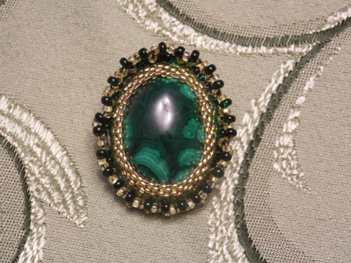 Прекрасное сочетание оплетки с камнем. Натуральный малахит — капризная штука, не всякое к себе хорошо принимает.