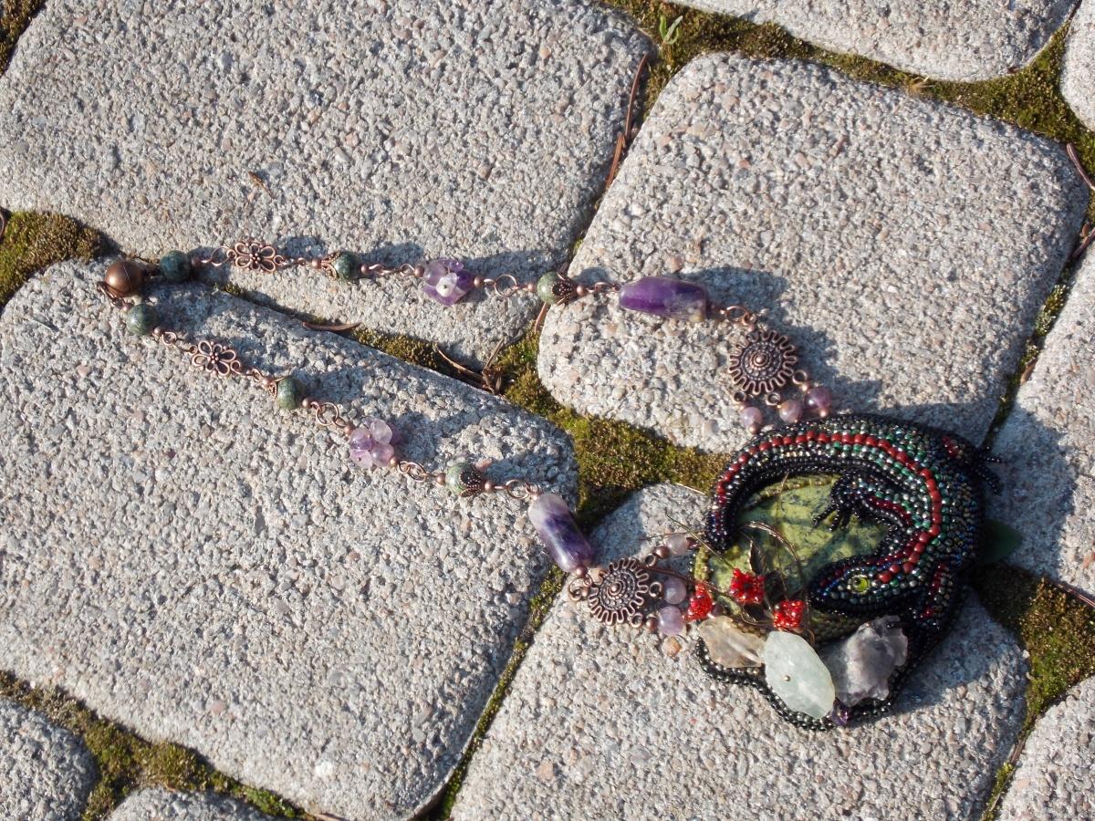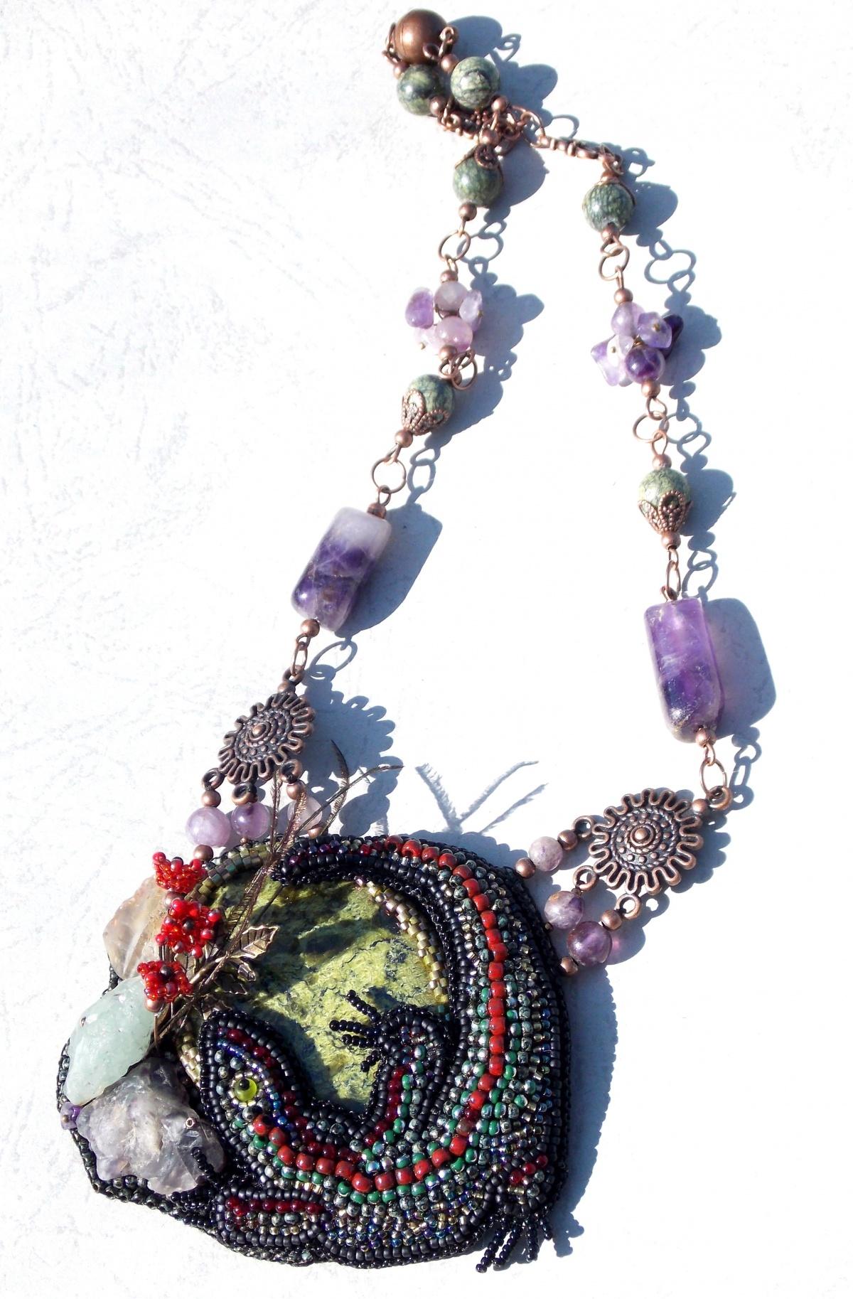 На теплых камешках, в ожидании тепла пригрелась зеленая ящерка, распустились первые цветочки… Кулон создан в рамках конкурса Мир вокруг нас-природа!!! Очень рада была принимать в нем участие!!! Огромное спасибо всем за голоса и теплые отзывы ))) ( Кстати радовалась, что меня никто не узнал, не угадал))))))))))