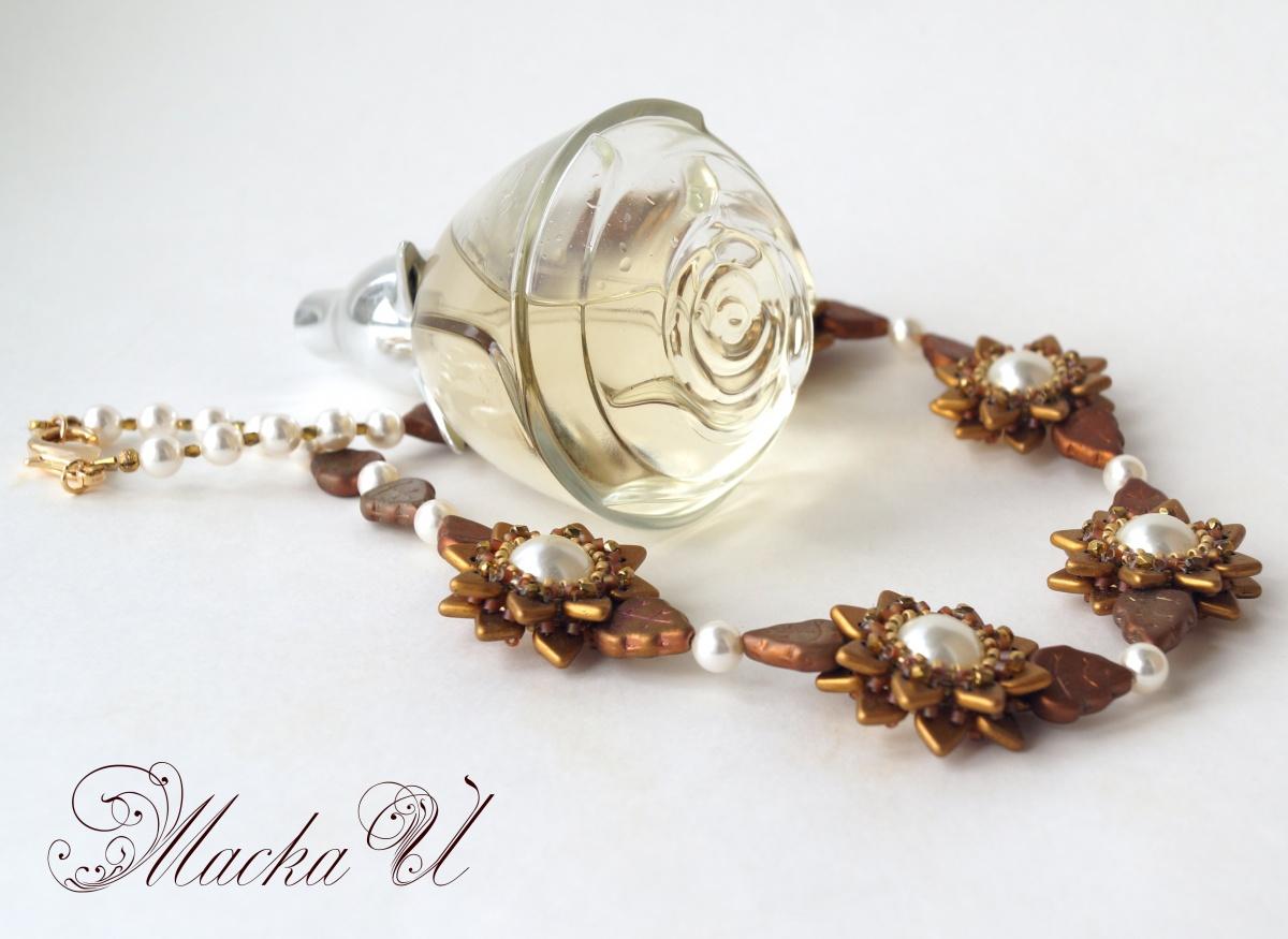 Интересное решение. Мама будет довольна. Меня заинтересовало, как же Вы эти треугольные бусины крепили в виде цветка. Видимо ко второму ряду оплетки бусины?