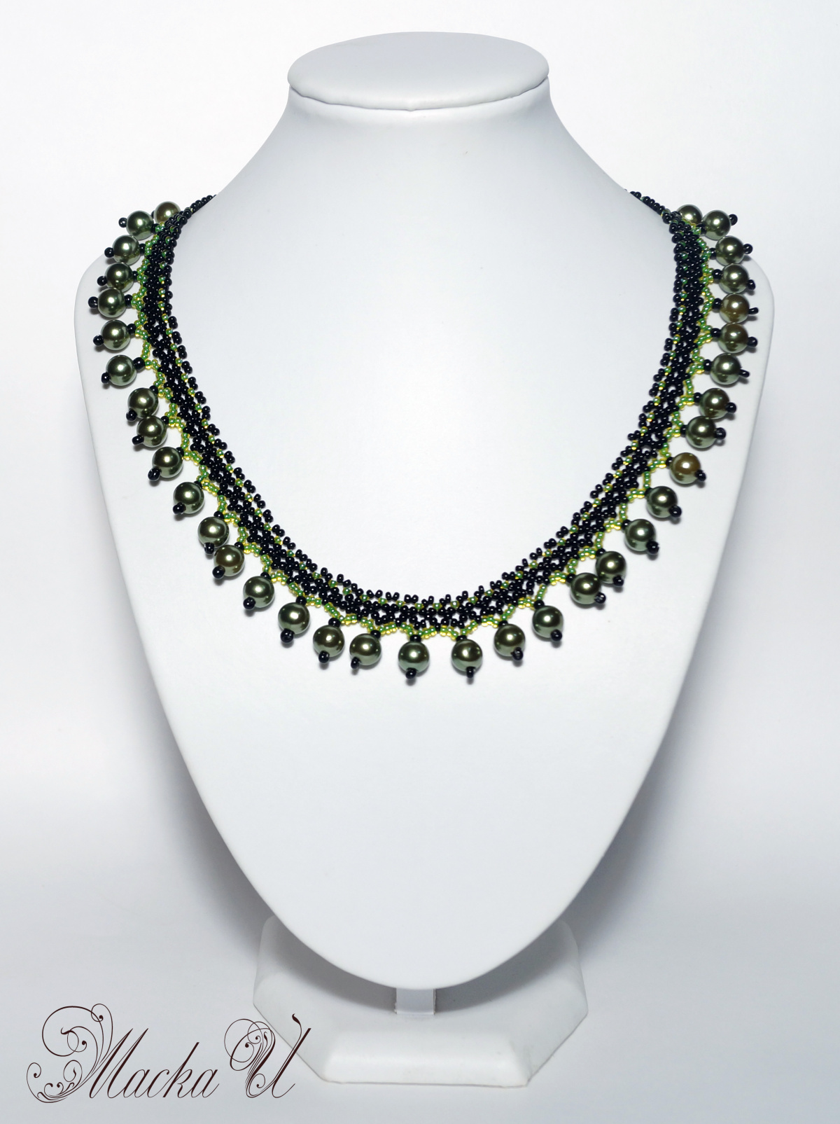Воротник и манжетик из бусин, делала давно на заказ. Пришивать, как в детстве, после каждой стирки. Фото тоже плохое