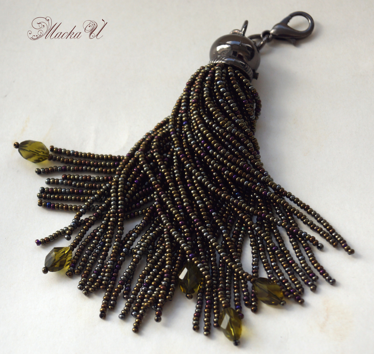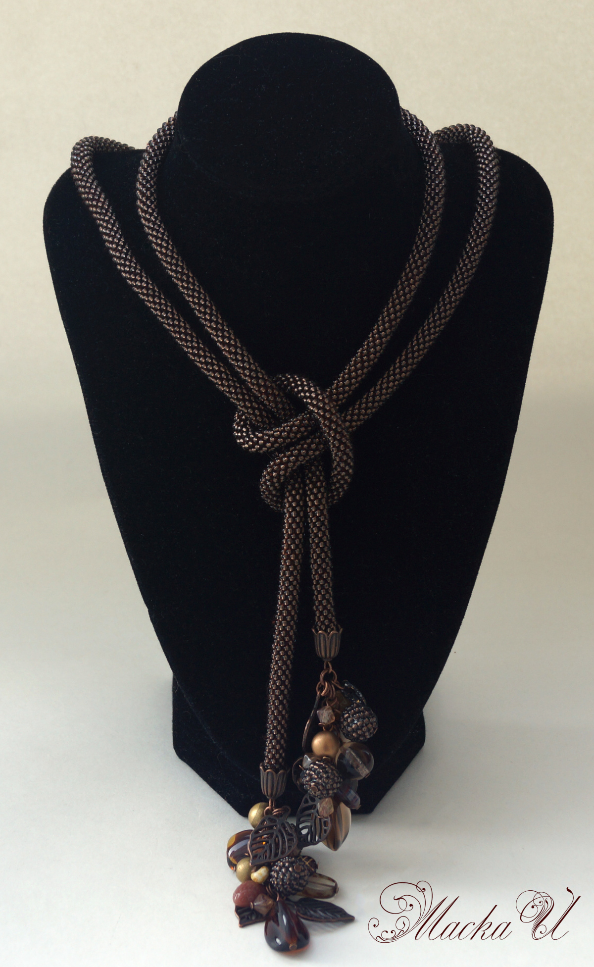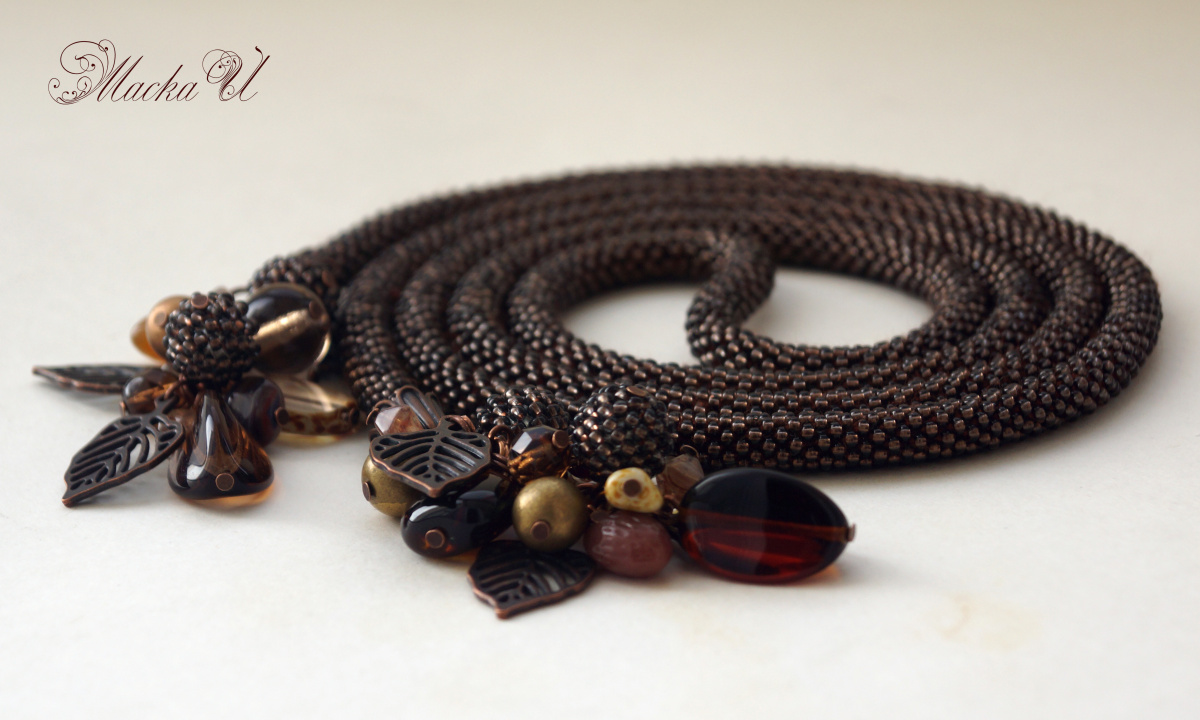 Коричневый лариат из чешского бисера и микса бусин.
