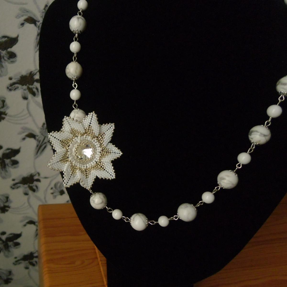 Ксения, спасибо! В белом цветок-брошь по МК Лены Hellenca. Его можно отстегнуть от бус и носить отдельно.
