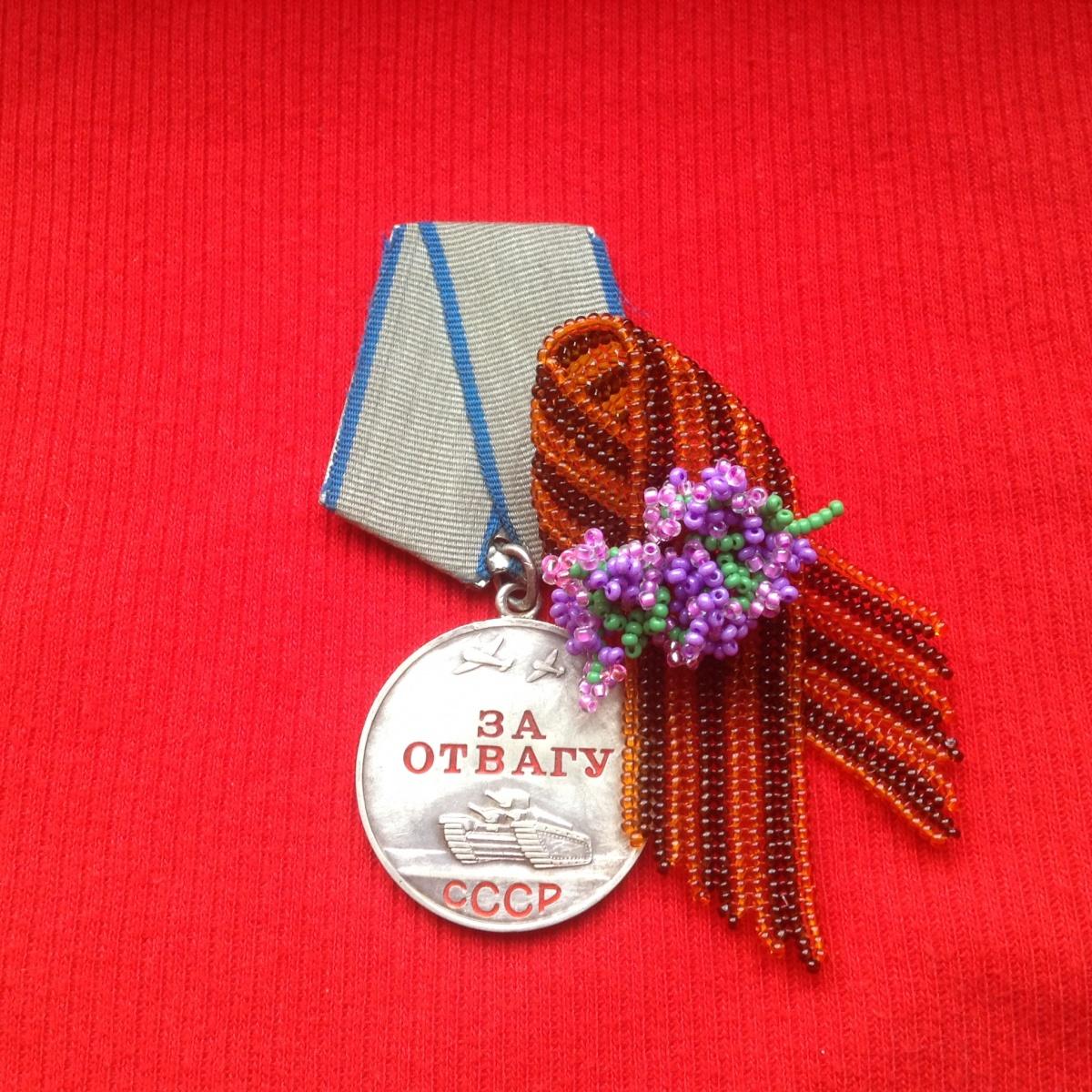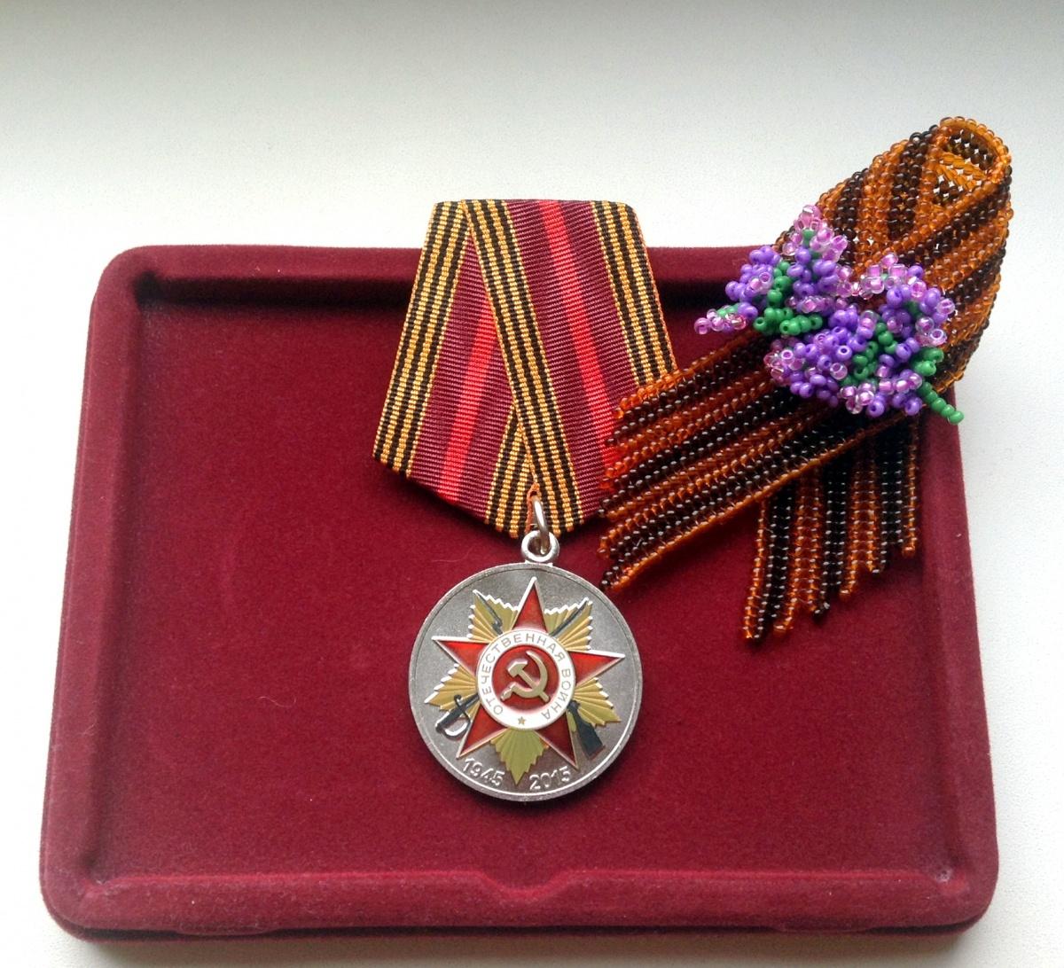 Здесь брошь на фоне Юбилейной медали к 70 летию Победы