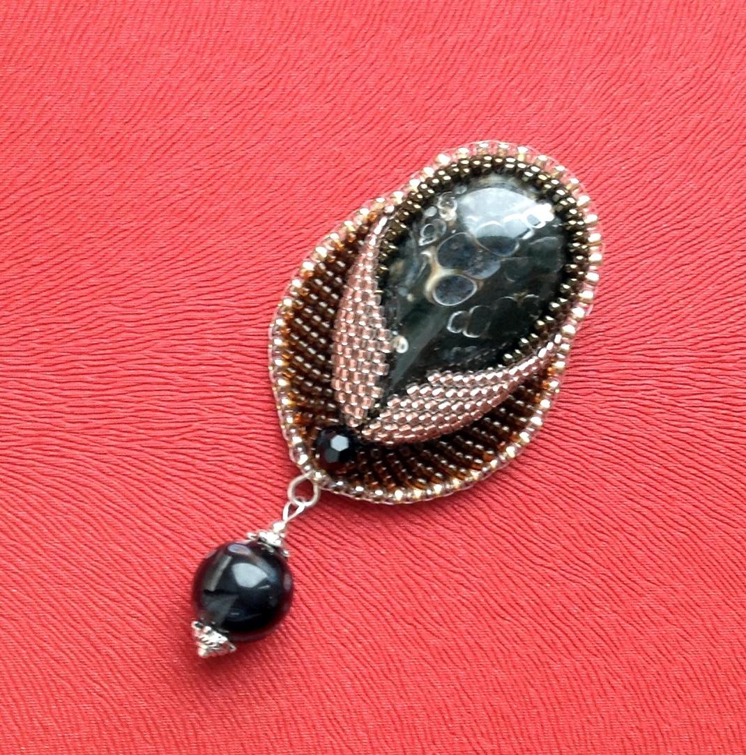 Брошь — для дочки — она хотела меньше размером — поэтому сплела одну пару листиков: