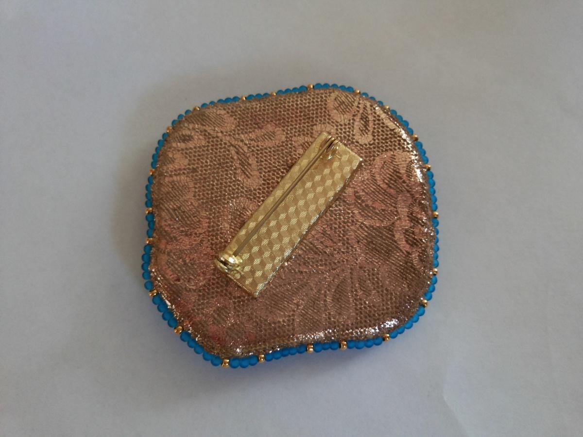 Хотя, сейчас думаю, что, можно было обшитый кабошон просто пришить поверх цельной ткани