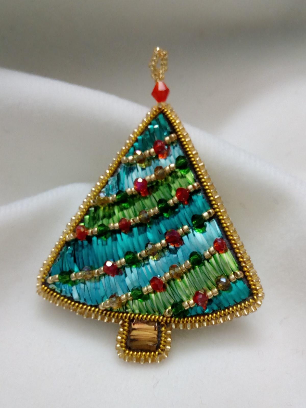 Вышила украшение для нашей елочки-- битью, жесткой канителью, японским бисером №15…