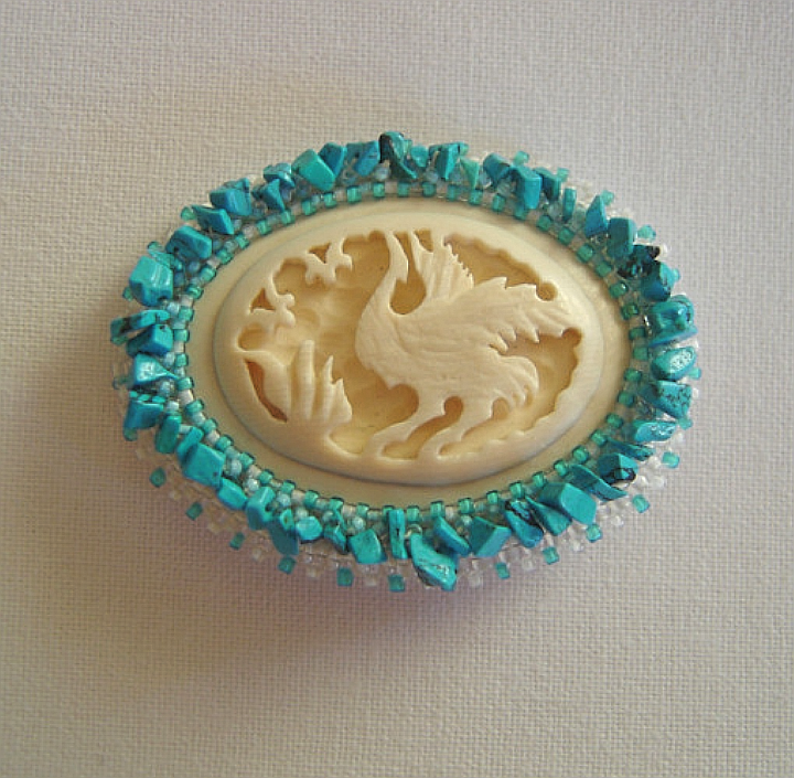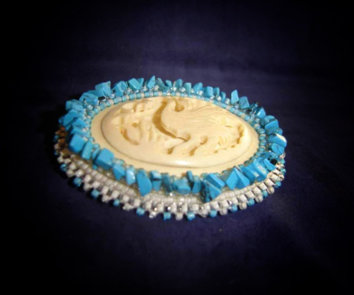 Я его обшила крошкой бирюзы(возможно это был и говлит, но покупала тогда снизку эту как «бирюза»