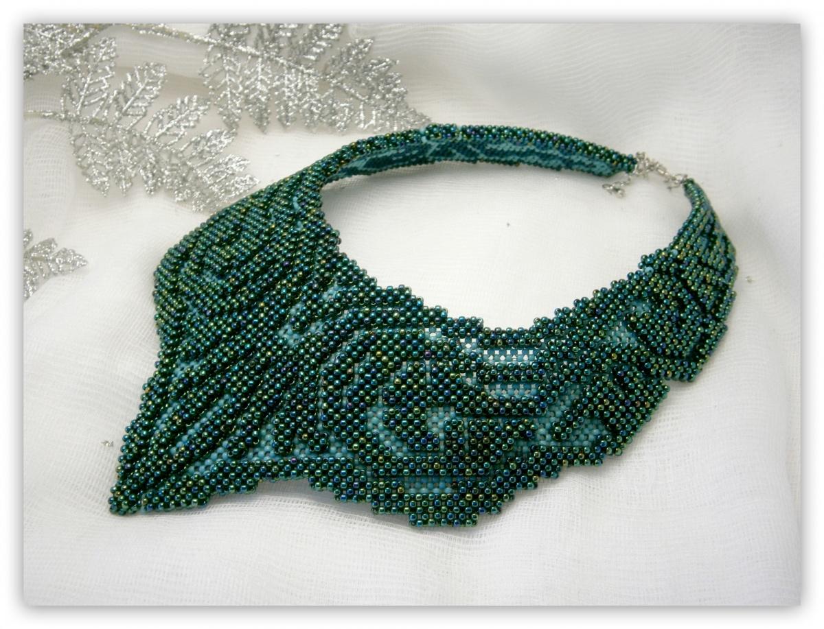 И я в силу своей противности опять напутала схему. И плела на мононити. Колье получилось жёсткой формы, но сидит отлично. Сплетёныйдля образца носик очень нравится, мож сделать серьги такие? Чуть-чуть бисера осталось.