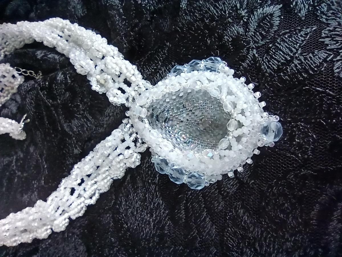 Бисер чех, белый разных оттенков, прозрачная огромная бусина и ручки родные, русские.
