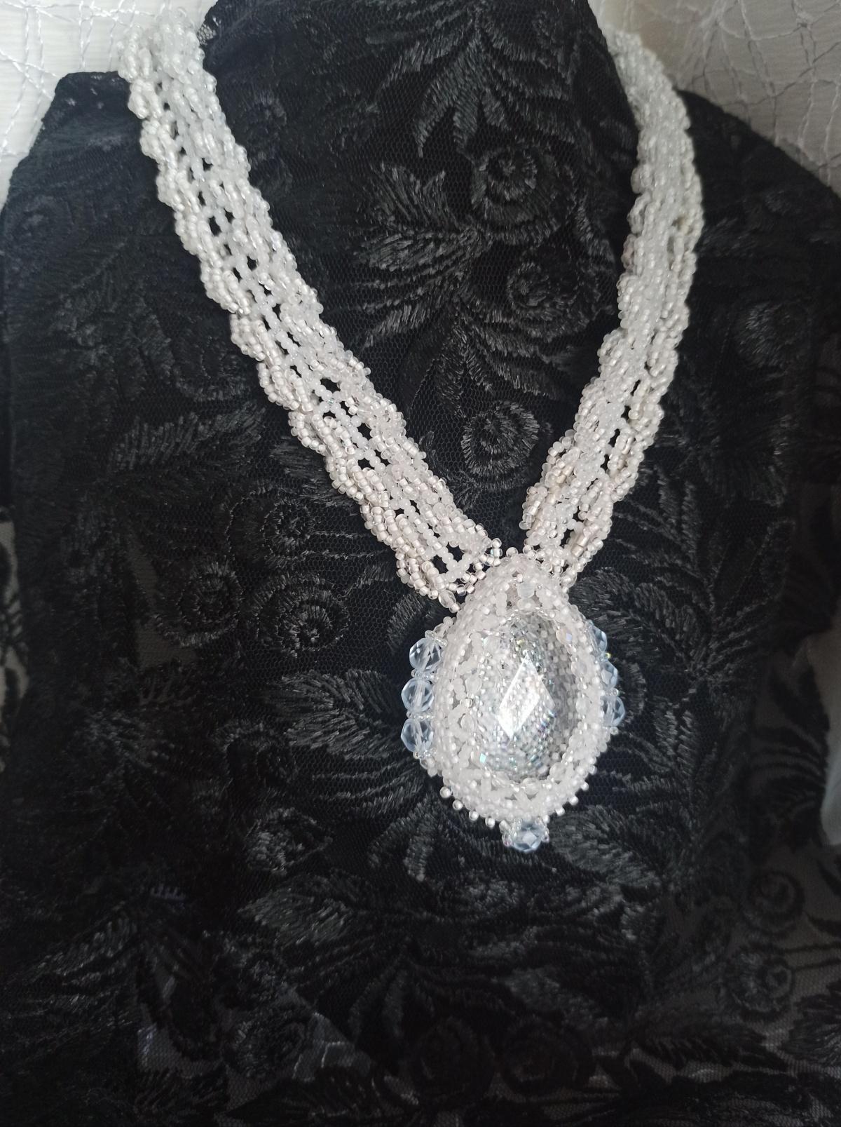 С точно такой же бусиной была ещё на БИ белая огалала, вот здесь есть одна картинка. Эта огалала уехала к Лиёк. А мне захотелось повторить оплетёную прозрачную бусину.