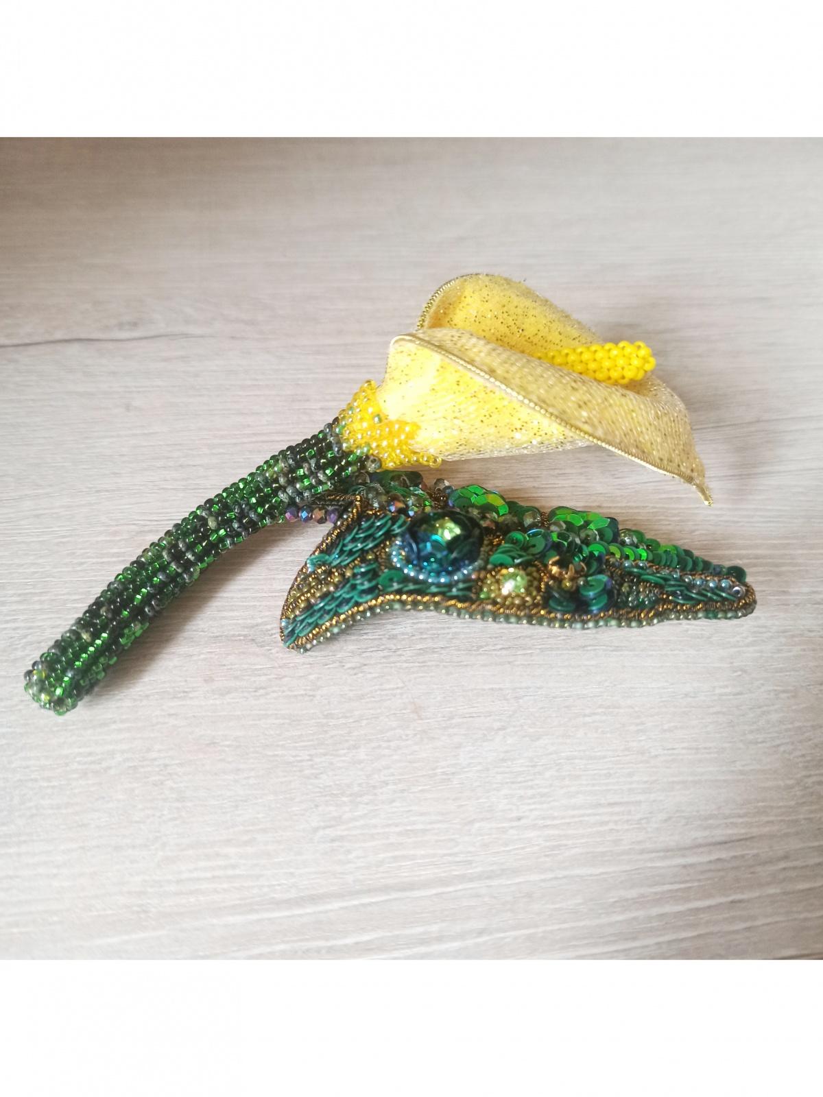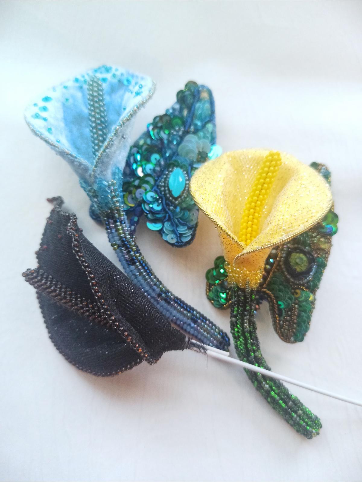-на жёлтом канитель на тонкой проволоке, сам цветок — фетр жёсткий, с двух сторон обложен (не обклеян, побоялась, что проступит) фатином в два слоя.