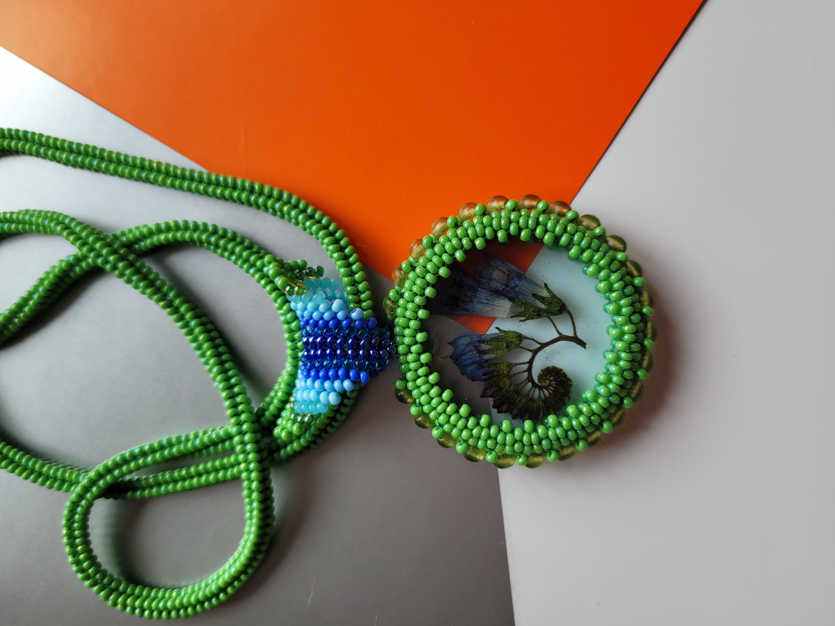 Сама цветок окопника(?) сорвала, засушила, эпоксидкой залила