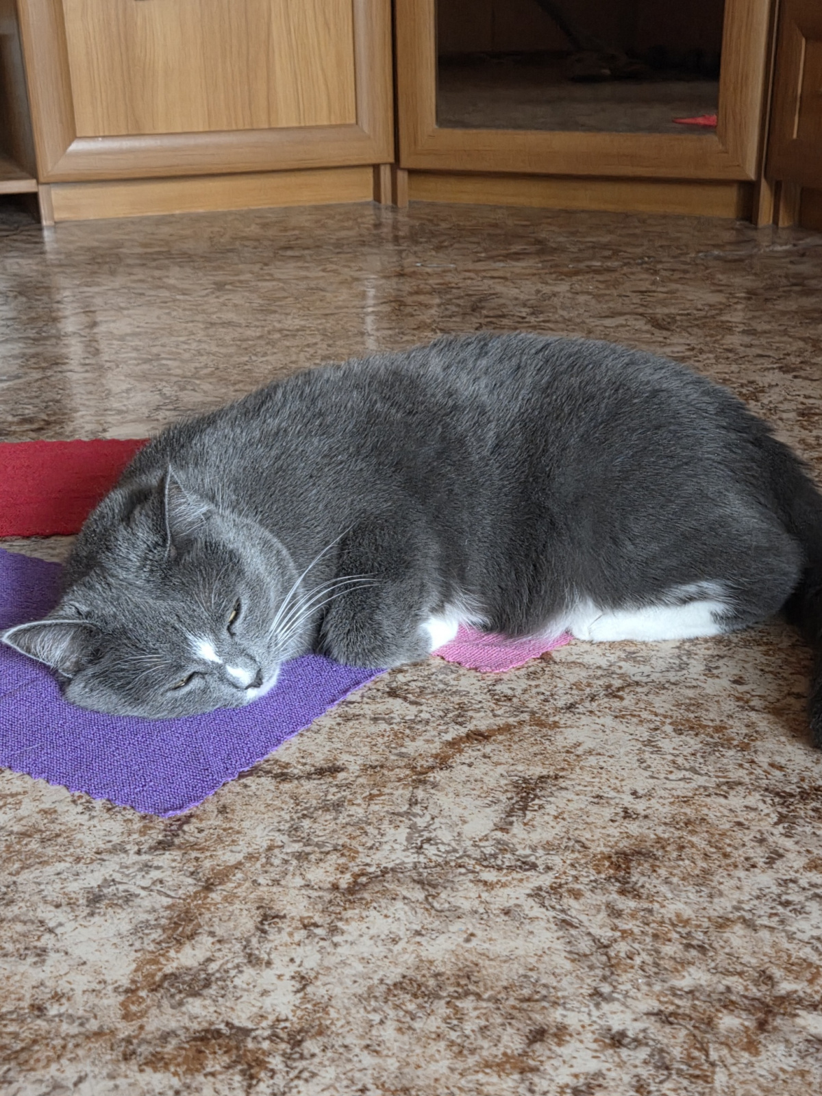 Мурочка валяется на влажных тряпочках — переживает жару: