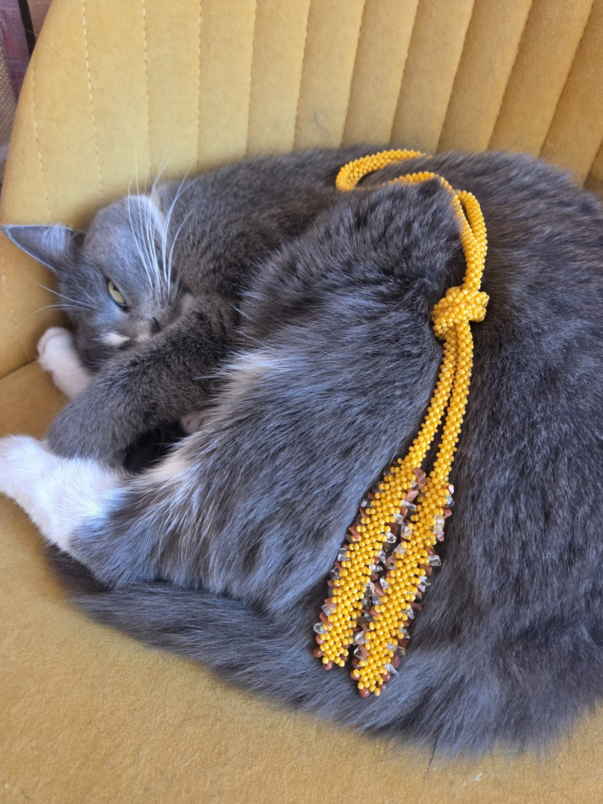 Поэтому к Тушке подносить бисер можно только когда она в полу-сонном состоянии