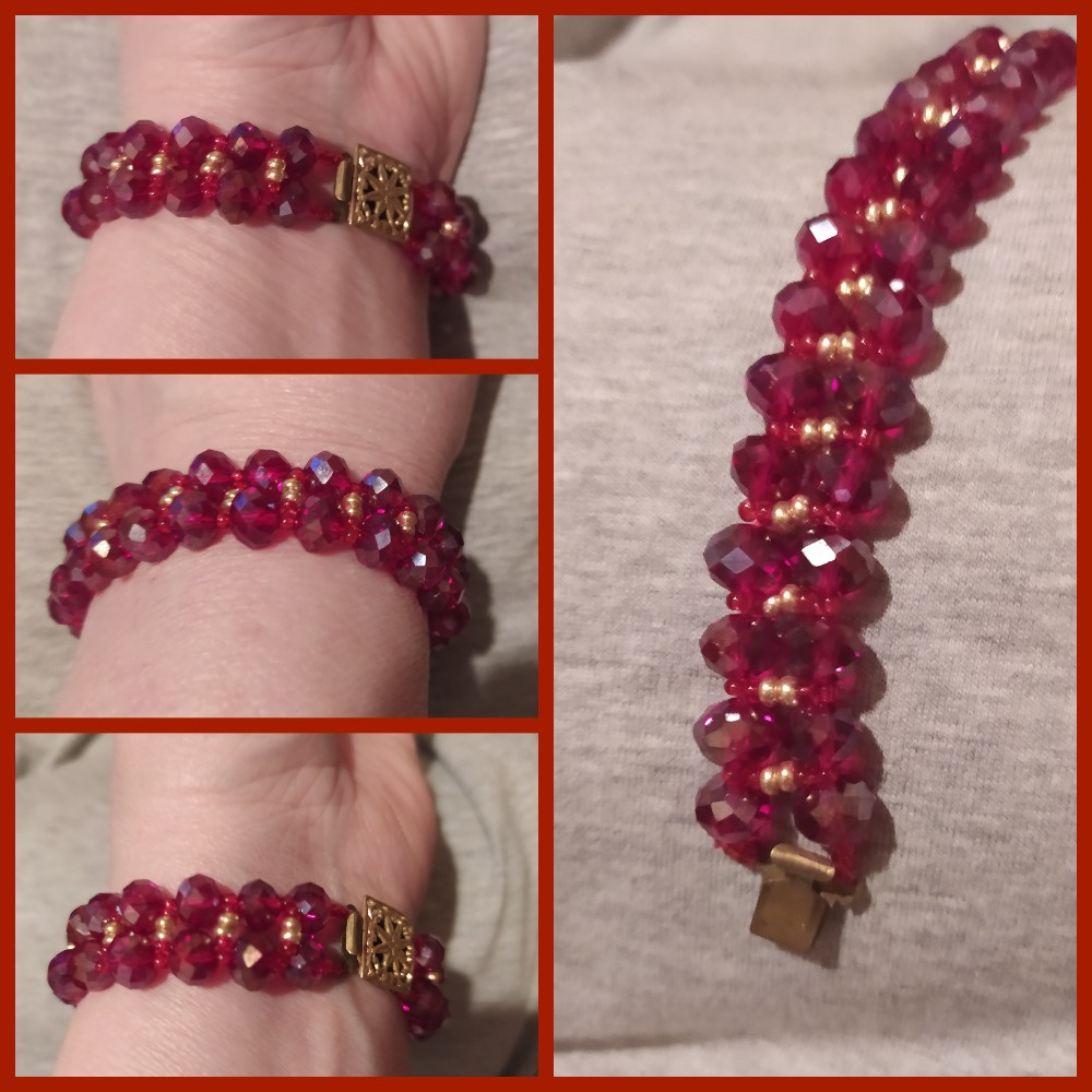 В этом украшении немного другой метод, больше похоже на ткачество. Для такого браслета лучше брать рондели (у меня 6мм).