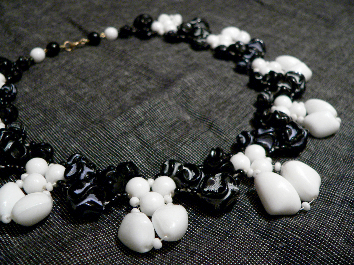 Цветовая классика, необычная форма бусинок, удачное расположение и вуаля шикарная красота!!! Молодец!!!