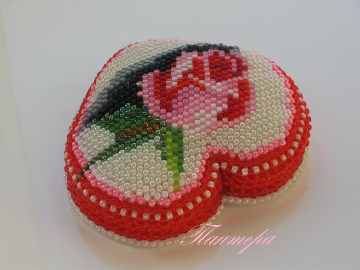 Кулончик-сердечко я сделала сразу после объявления флешмоба, а игольницу пришлось вышивать по ночам, чего делать, видимо, не желательно