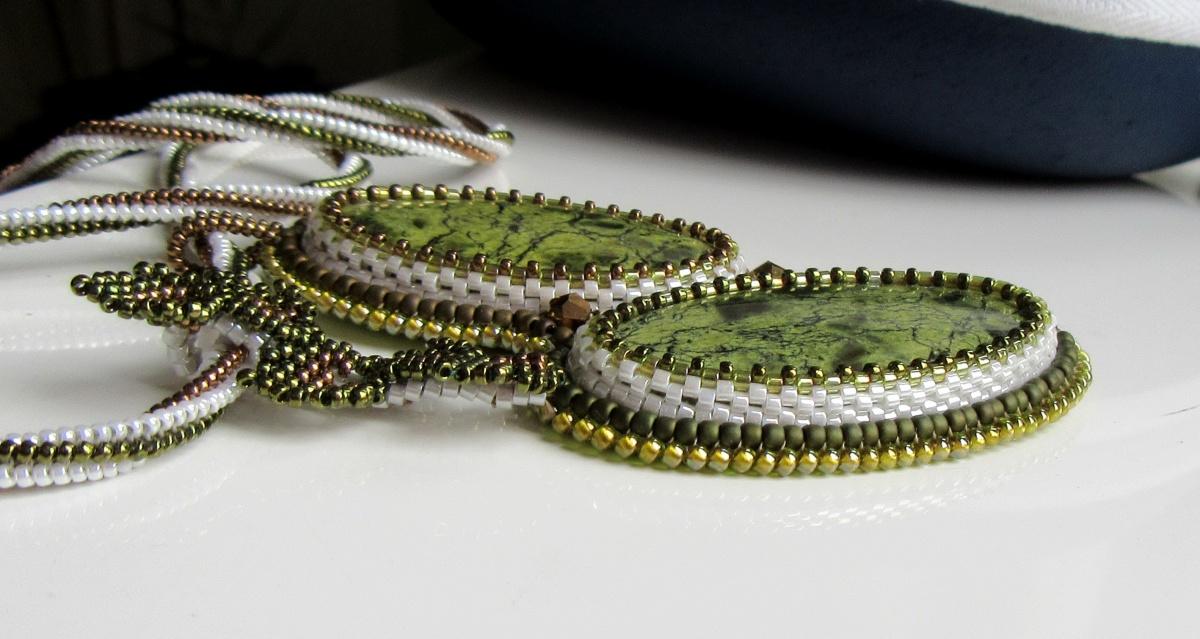 Между плетением по МК и ремонтом кухни сваялось два кулона, каждый из двух камушков.