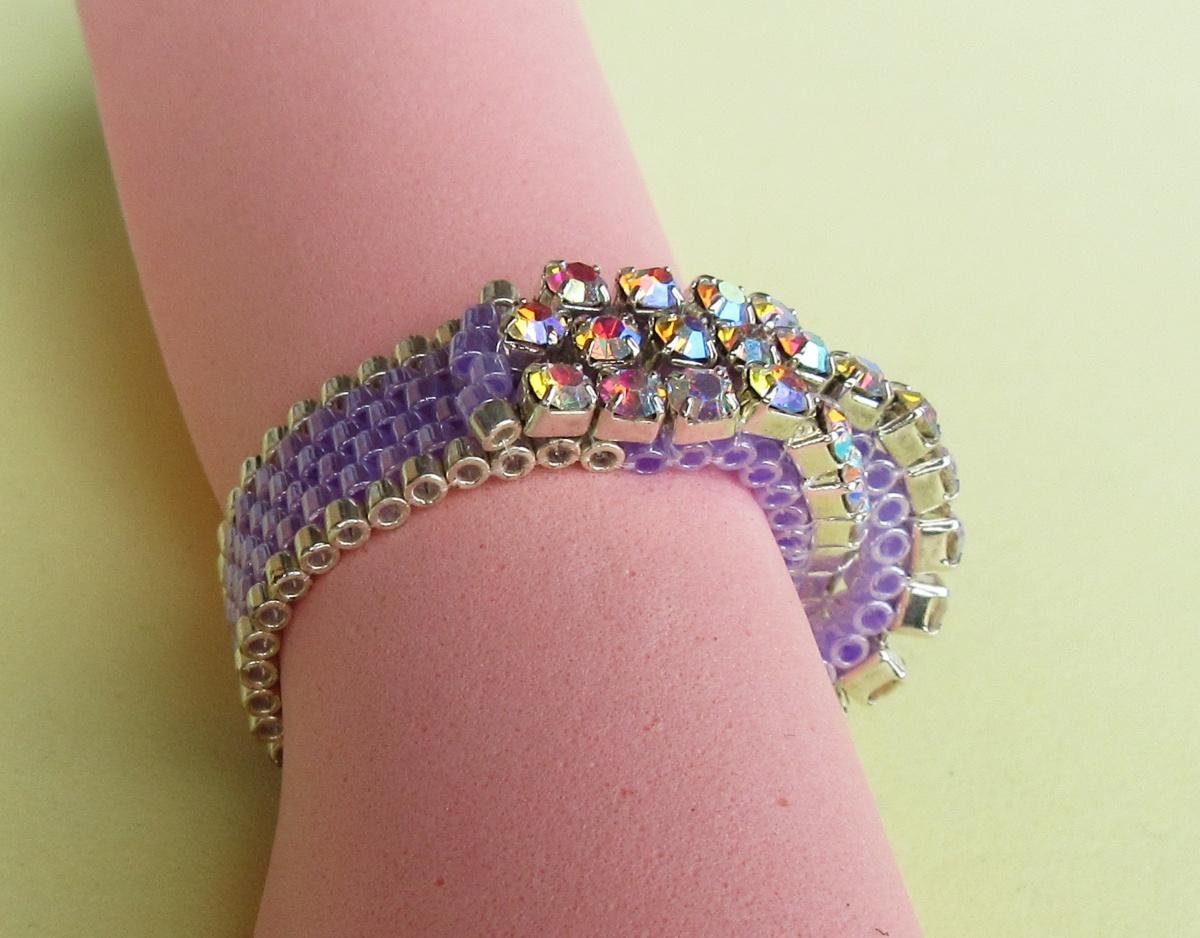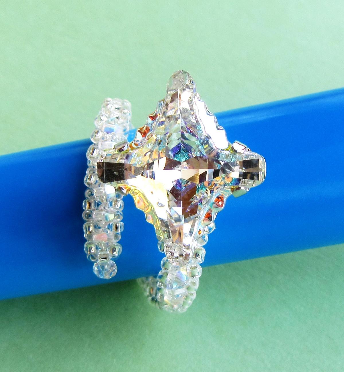 Крепление я выше выложила, там и мононить как проходит видно, а ещё я конец мемори закрутила по форме кристалла и всунула под кристалл, можно было даже нитью не проходить — сидит жёстко, крепко.
