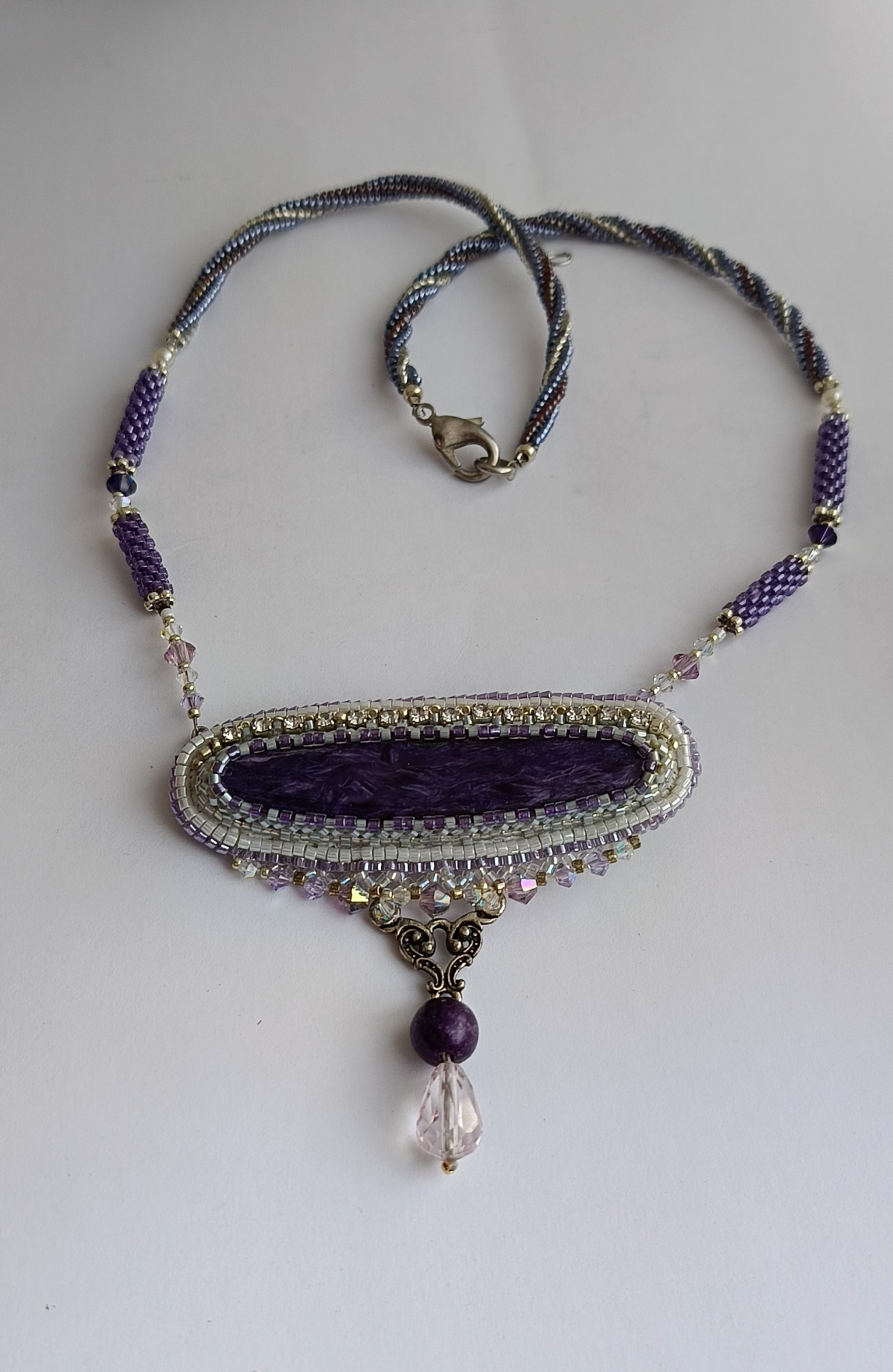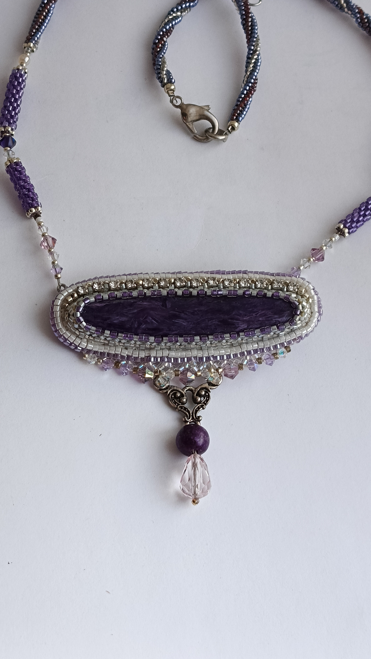 . Вариант кулона, которы хотела надеть, как законченный, покажу потому, что обещала. Сам камушек и первый вариант можно посмотреть в моей работе ранее. Ссылку в телефоне не знаю, как сделать, сорри. Пришлось зайти в ноутбук, даю ссылку на камушек и первый вариант кулона