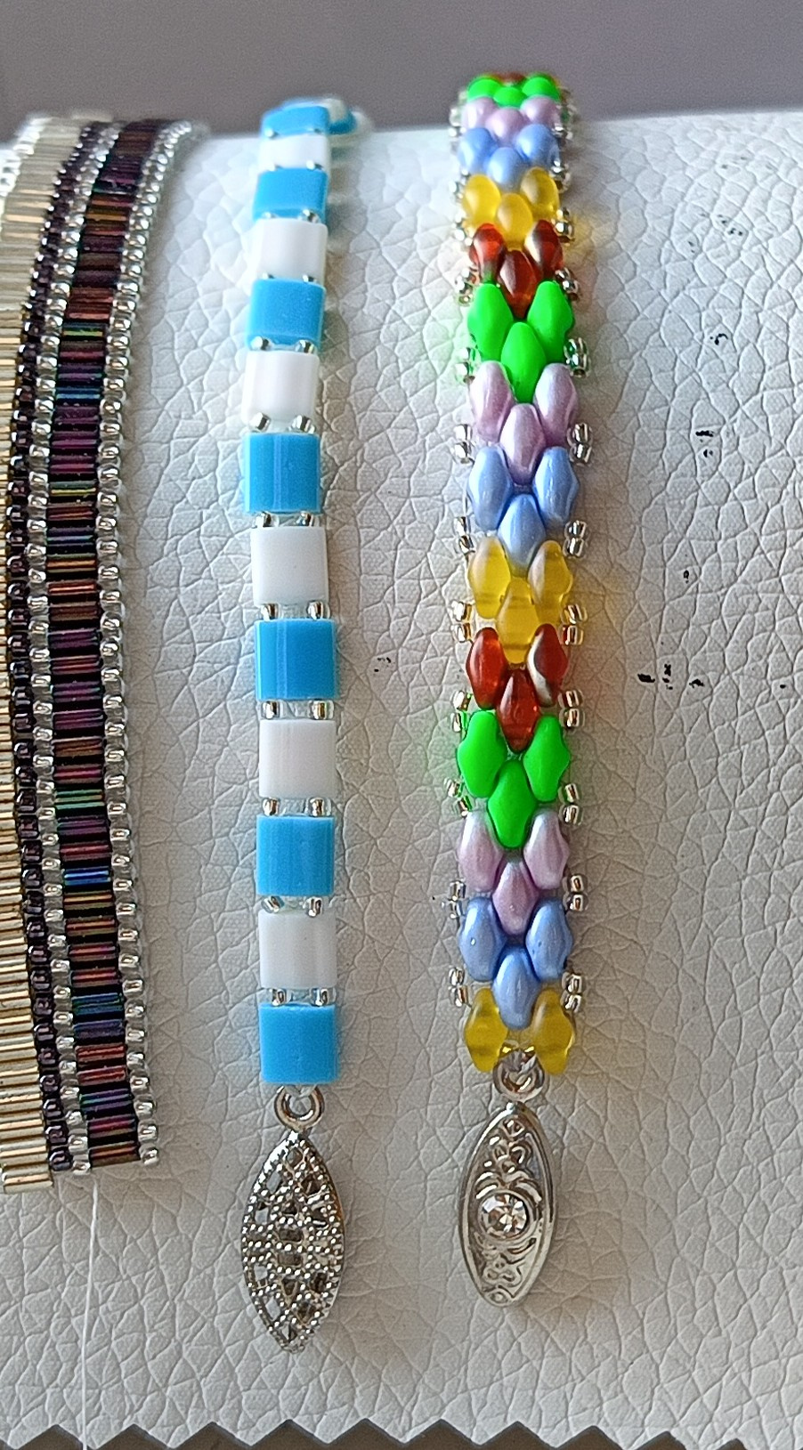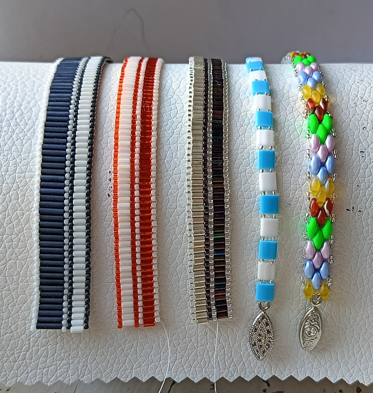 Раз уж ещё со стеклярусом работы«принимаются», покажу свои, недавно сделала. . . . . Последние два подарила девчушке 7-ми лет, три не доделала — не знаю ещё размеры.