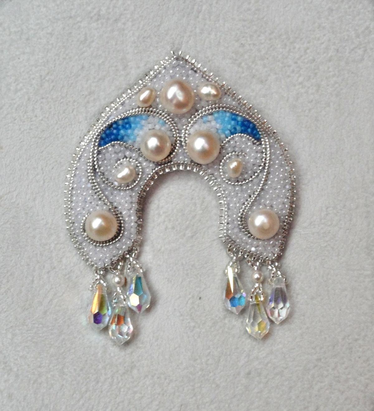 Чудесная брошь! Переходы цвета очень понравились! А налобник можно было попробовать сделать из кружев.